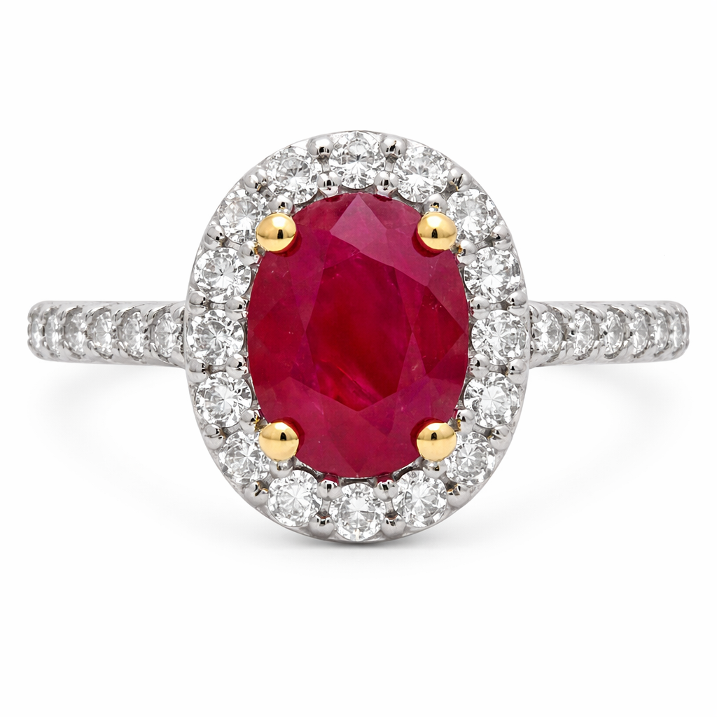 - > Natural Ruby 1.26ct & Diamond 0.61ct Oval Shaped Cluster Ring