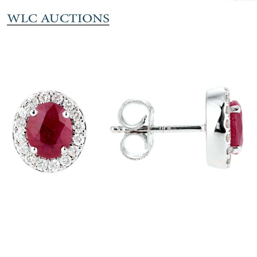 - > Natural Ruby 1.39ct & Diamond 0.29ct Oval Shaped Cluster Earrings