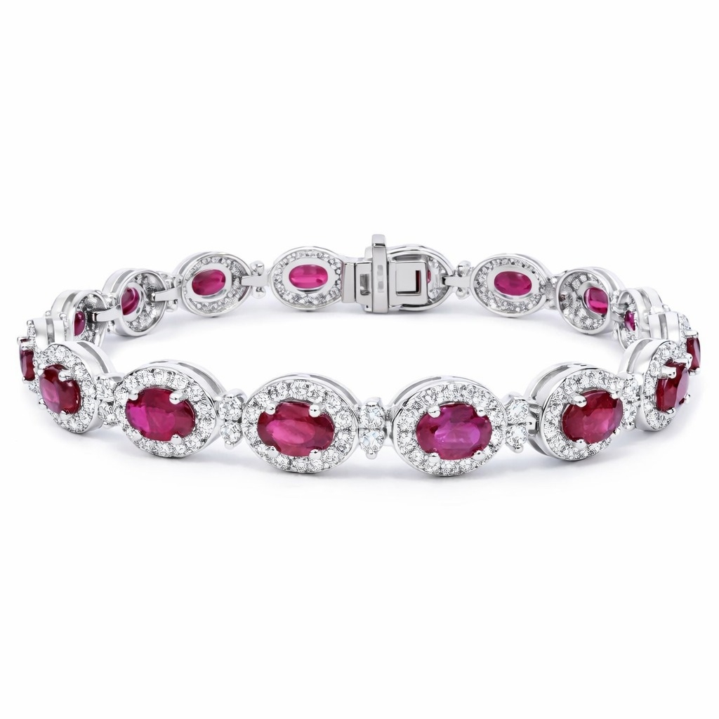 - > Natural Ruby 8.24ct & Diamond 3.32ct Oval Shaped Cluster Bracelet