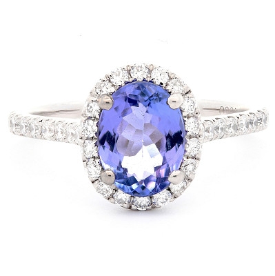 - > Natural Tanzanite 1.36ct & Diamond 0.39ct Oval Shaped Cluster Ring