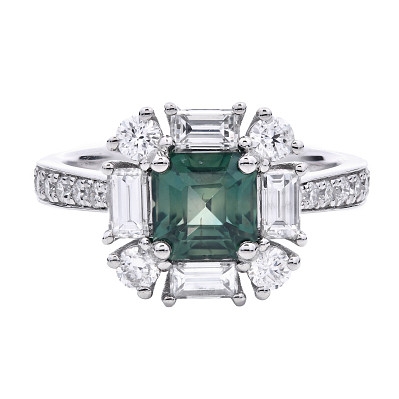 - > Natural Teal Sapphire 1.38ct & Diamond 0.88ct Cluster Ring