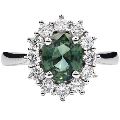 - > Natural Teal Sapphire 1.66ct & Diamond 0.59ct Cluster Ring