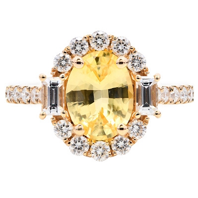 - > Natural Yellow Sapphire 1.71ct & Diamond 0.73ct Oval Shaped Cluster Ring