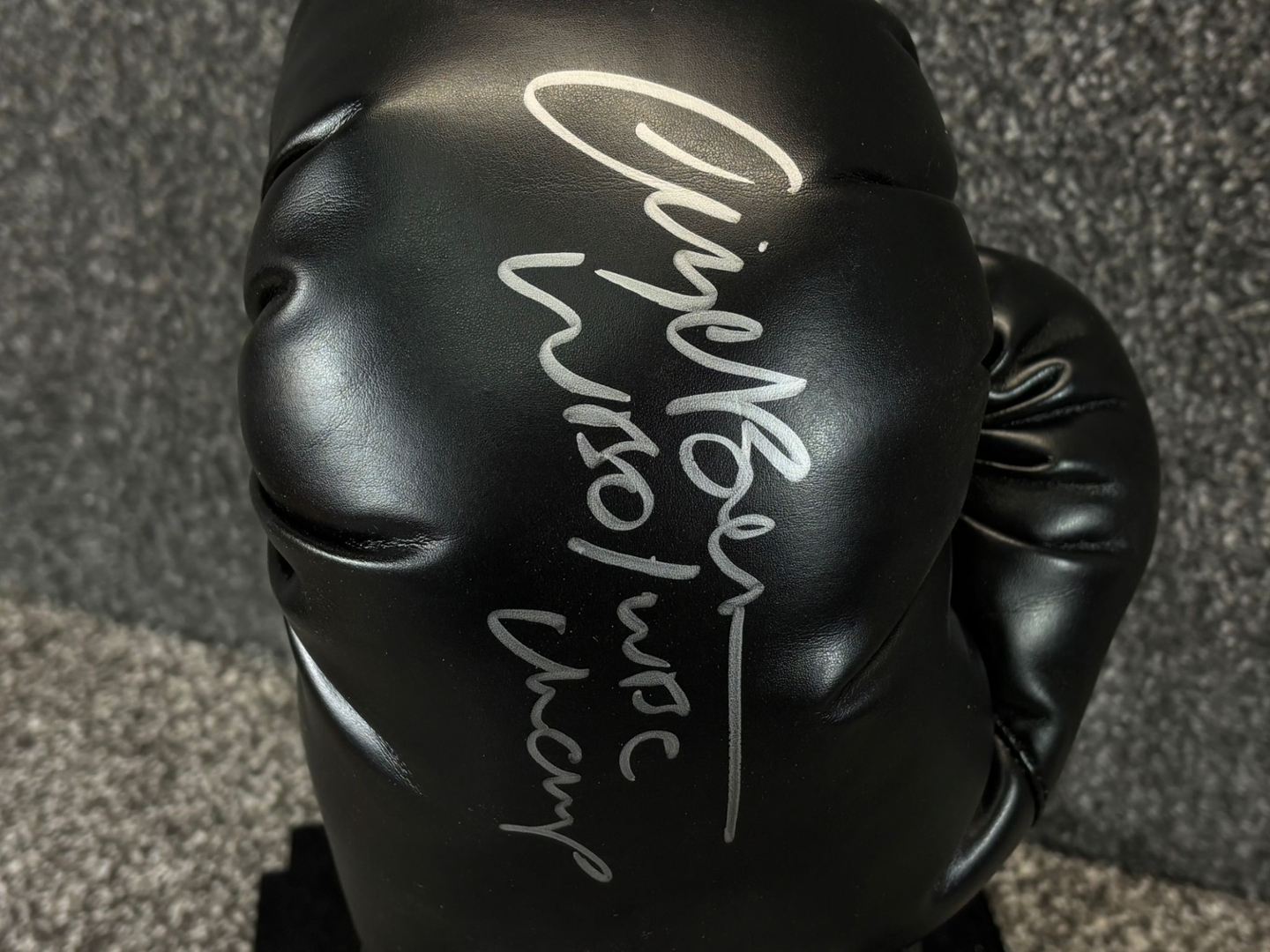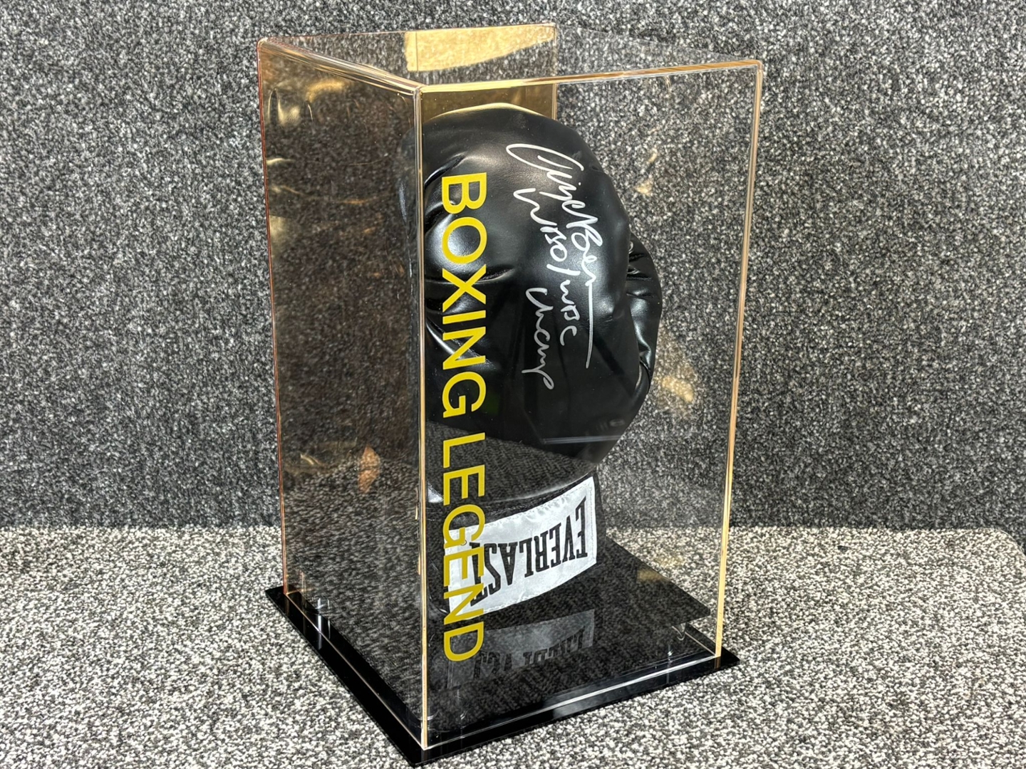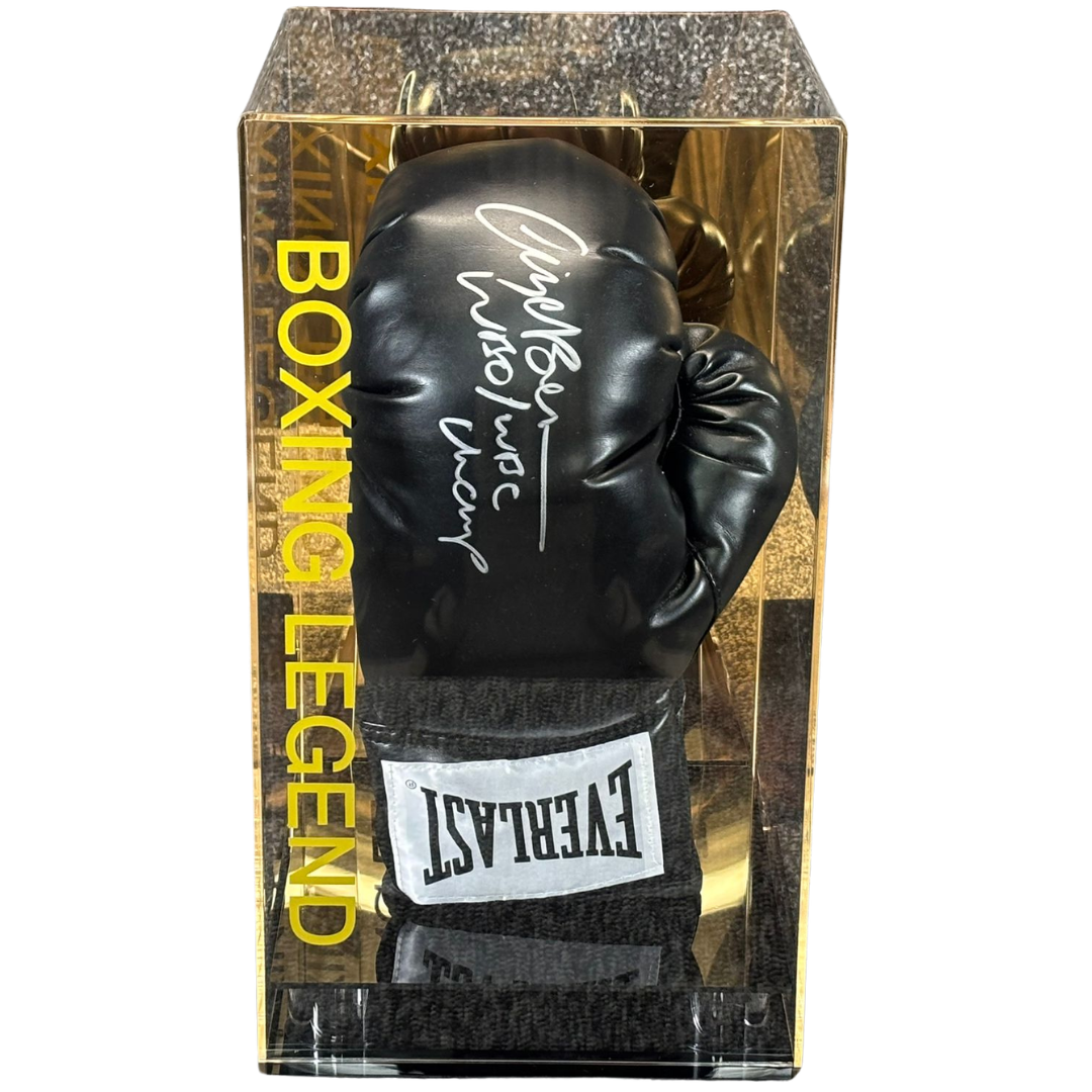 The authentication ensures the signature's legitimacy, adding value for collectors and boxing enthusiasts alike. This piece serves as a timeless reminder of Benn's legacy, making it an ideal centrepiece for any sports memorabilia collection. Whether you're a long-time fan or new to the sport, this signed glove is a significant piece of boxing history.