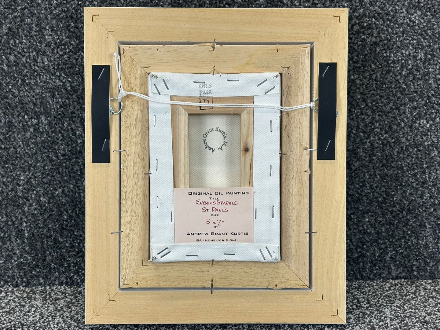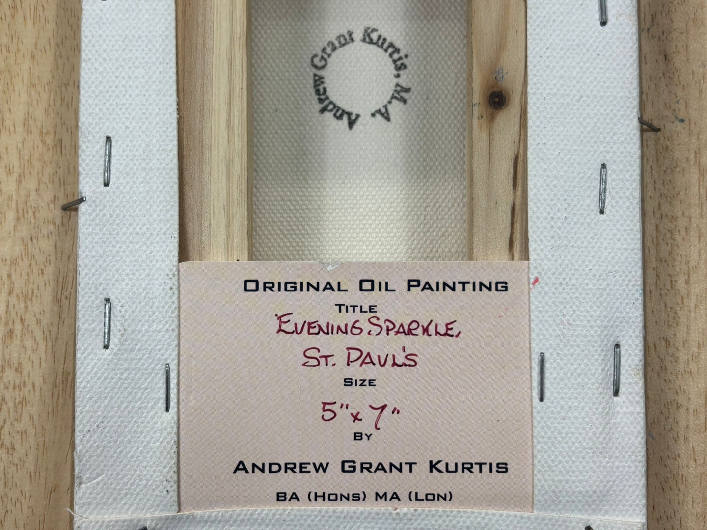 A framed original oil painting by Andrew Grant Kurtis titled 'Evening Sparkle St Paul's'. Approx 7" height, 5" width.