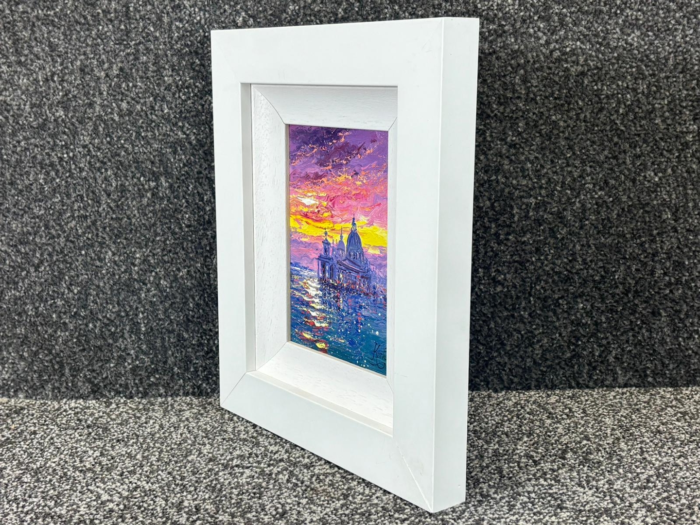 A compact yet impactful artwork measuring approximately 7 inches in height and 5 inches in width, presented in a clean, contemporary frame. A highly collectible and decorative piece, ideal for admirers of Venice scenes and Kurtis’ atmospheric landscapes.