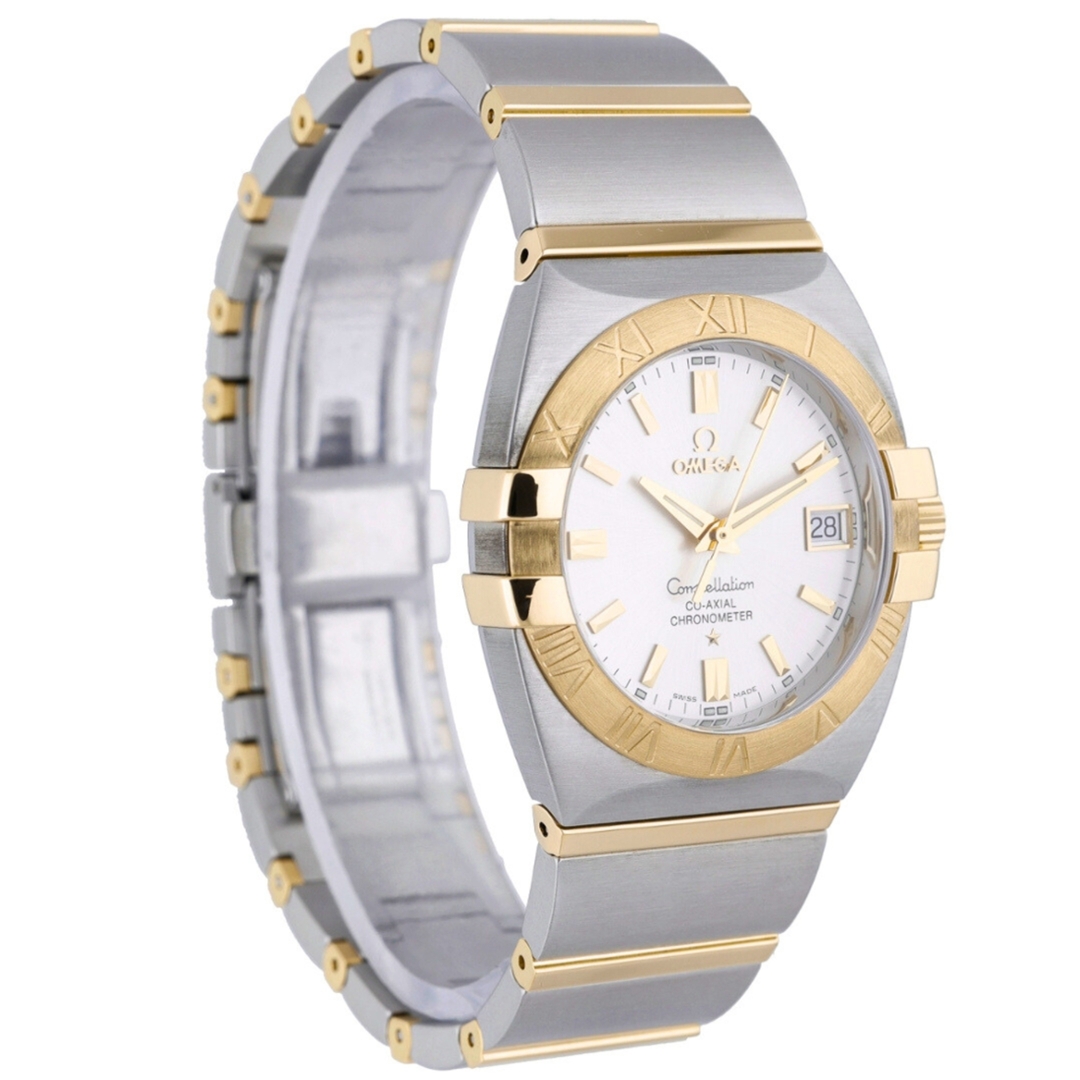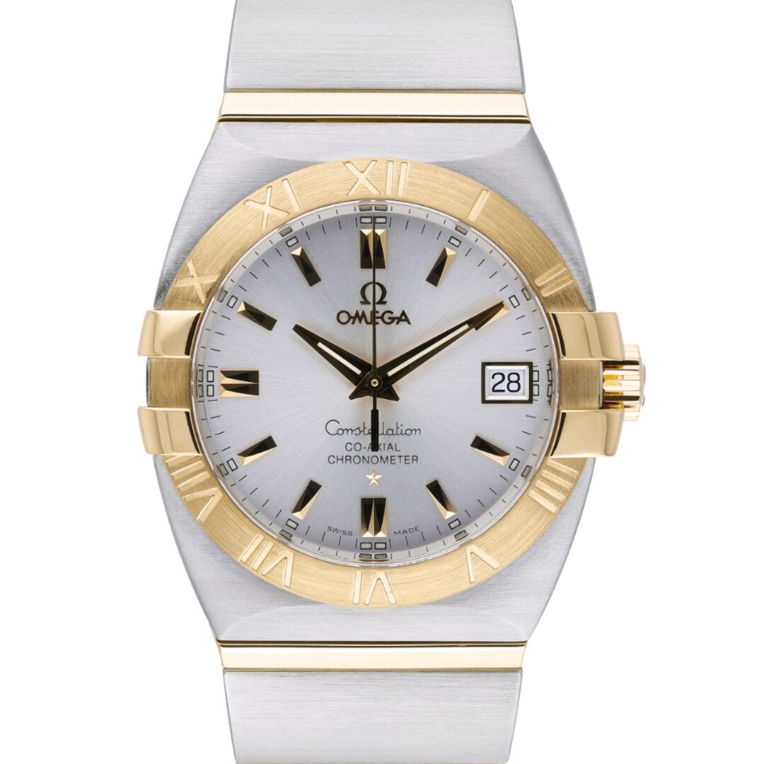 An Omega Constellation reference 1201.30.00, crafted in stainless steel and 18ct yellow gold, representing one of Omega’s most recognisable and enduring designs. The 35mm case features the iconic Constellation claws and a brushed yellow gold bezel engraved with Roman numerals, paired with a silver dial and applied gold-tone markers for a refined, balanced appearance.