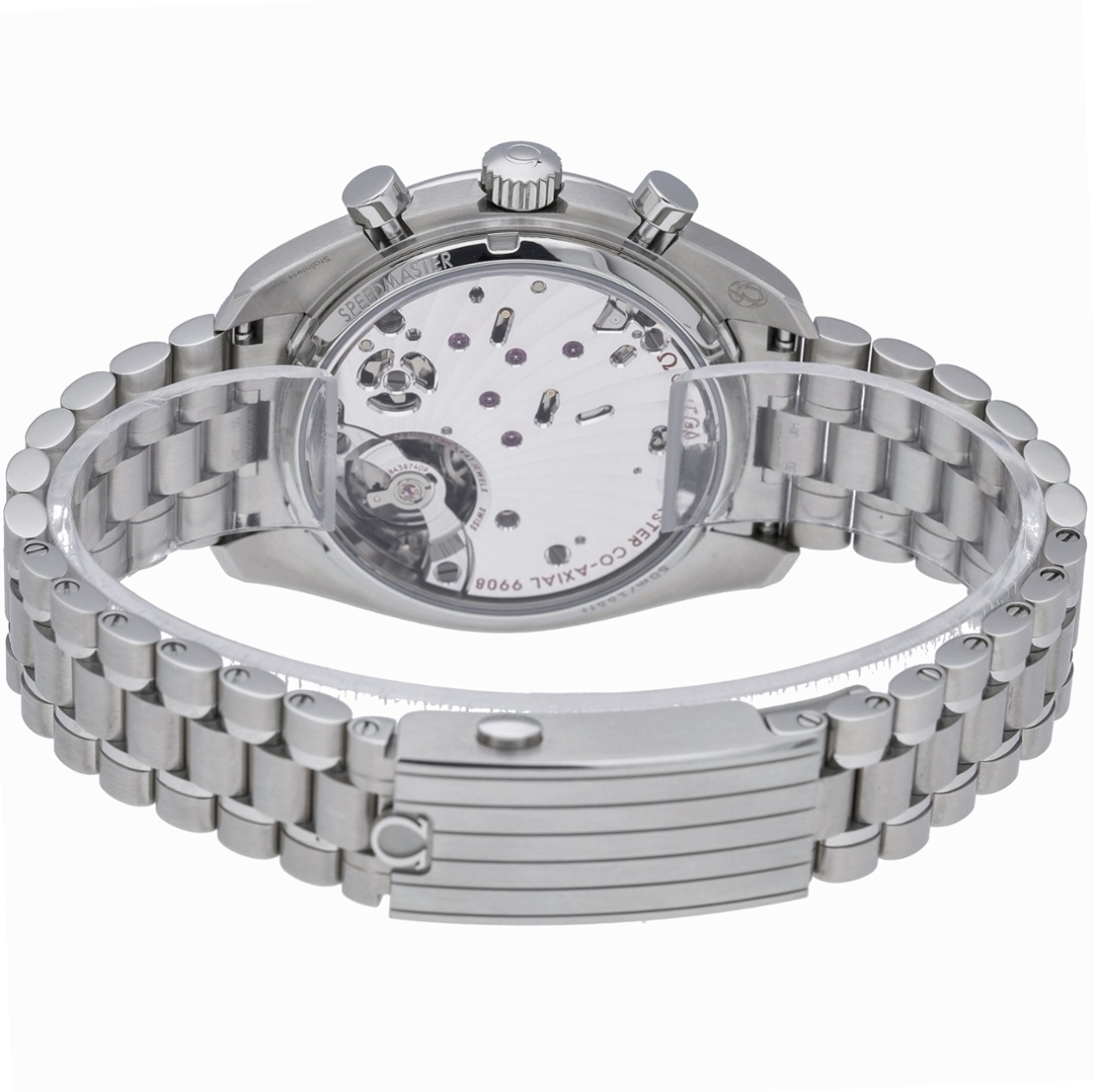Powering this reference is the Omega Co-Axial Master Chronometer Calibre 9908, a manually wound mechanical movement certified by METAS. Engineered with Omega’s Co-Axial escapement and resistant to magnetic fields up to 15,000 gauss, the calibre delivers exceptional precision and a 60-hour power reserve. Its column-wheel chronograph architecture ensures smooth and reliable operation.