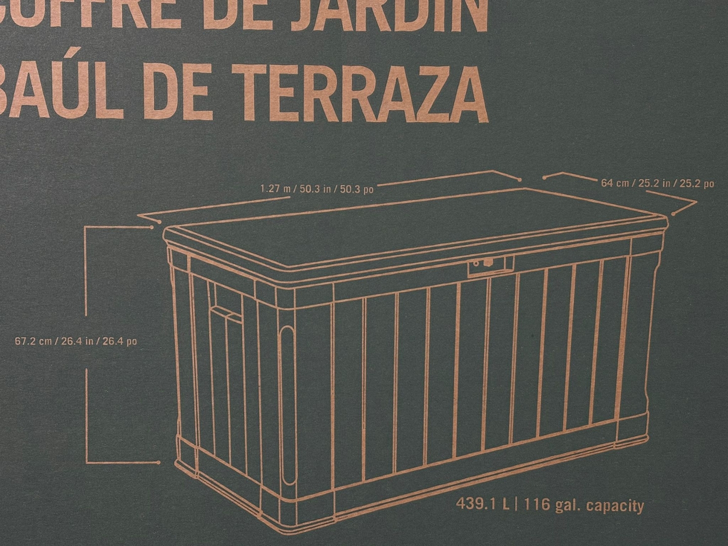 - > Outdoor 116-Gallon Storage Deck Box.