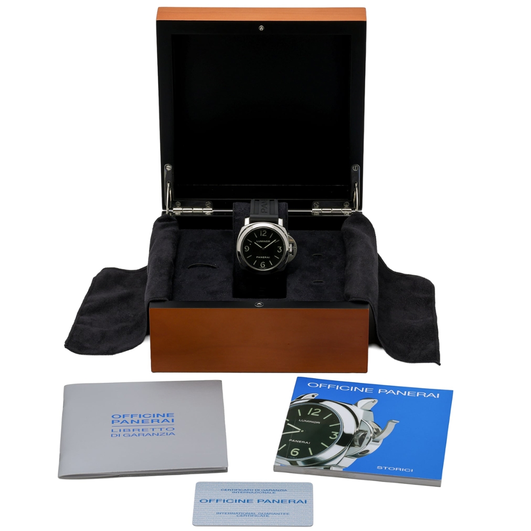 Supplied with original Panerai paperwork, this example is boxed, certified, and accompanied by a 12-month WLC warranty for added reassurance. A highly collectable reference, the PAM00112 stands as one of the purest expressions of the Luminor line, appealing to enthusiasts seeking a traditional, no-date Panerai with enduring market demand.