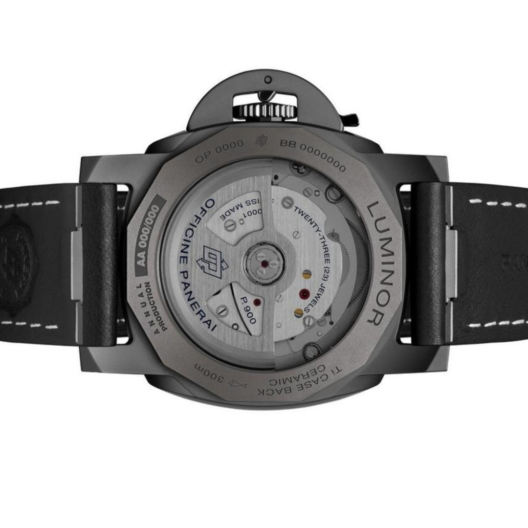 Powered by the Panerai P.900/GMT automatic movement, this in-house calibre operates at 28,800 vibrations per hour and offers a 3-day power reserve. The ceramic case enhances scratch resistance while positioning this reference within Panerai’s more modern and sought-after technical range, with the 40mm size and GMT function continuing to see strong demand.