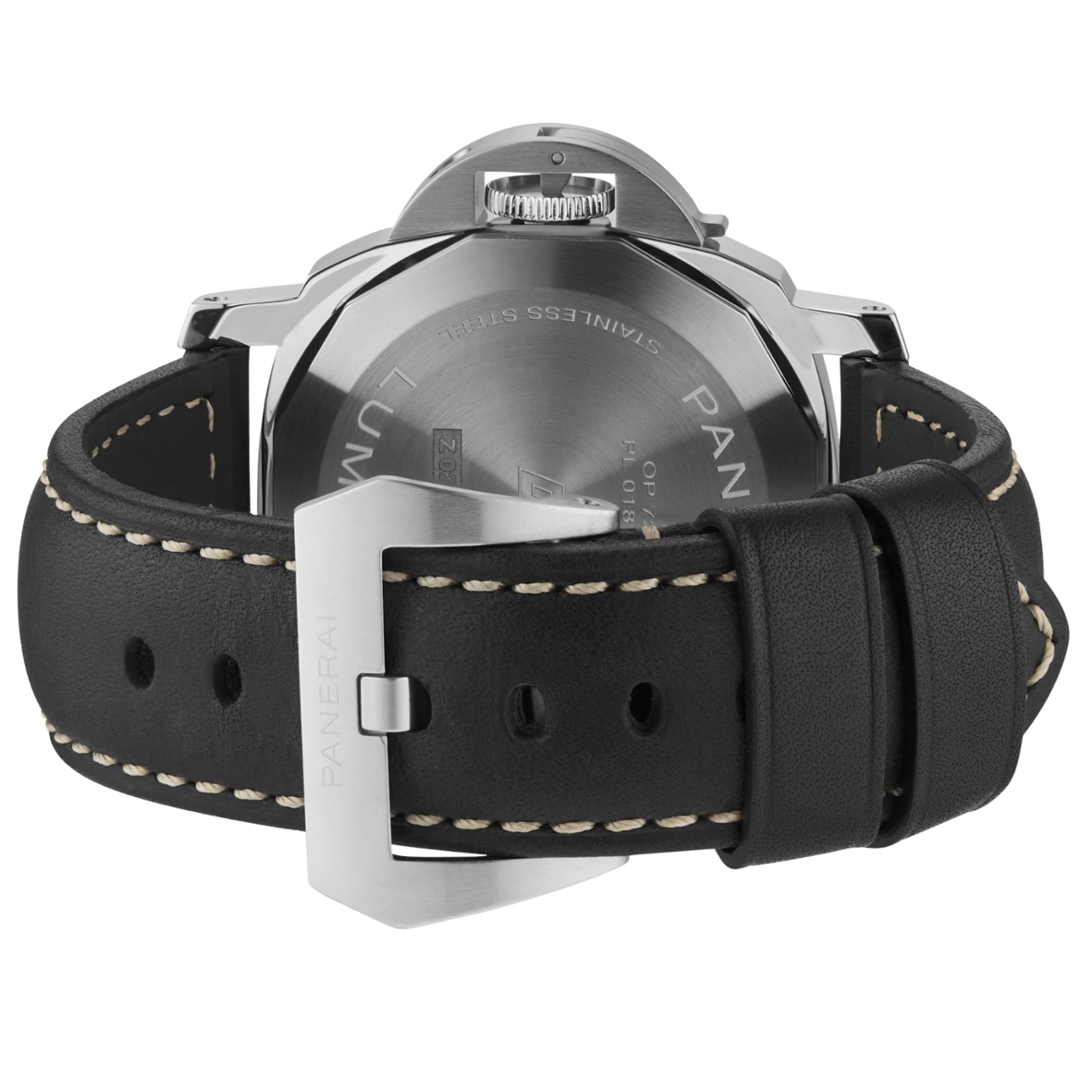 Powered by the Panerai P.6000 manual wind movement, this model offers a robust 3-day power reserve and reliable timekeeping, reinforcing its position as a true tool watch. The simplicity of the two-hand layout with small seconds keeps the focus on clarity and functionality, while the solid case construction delivers the presence and durability expected from the Luminor line.
