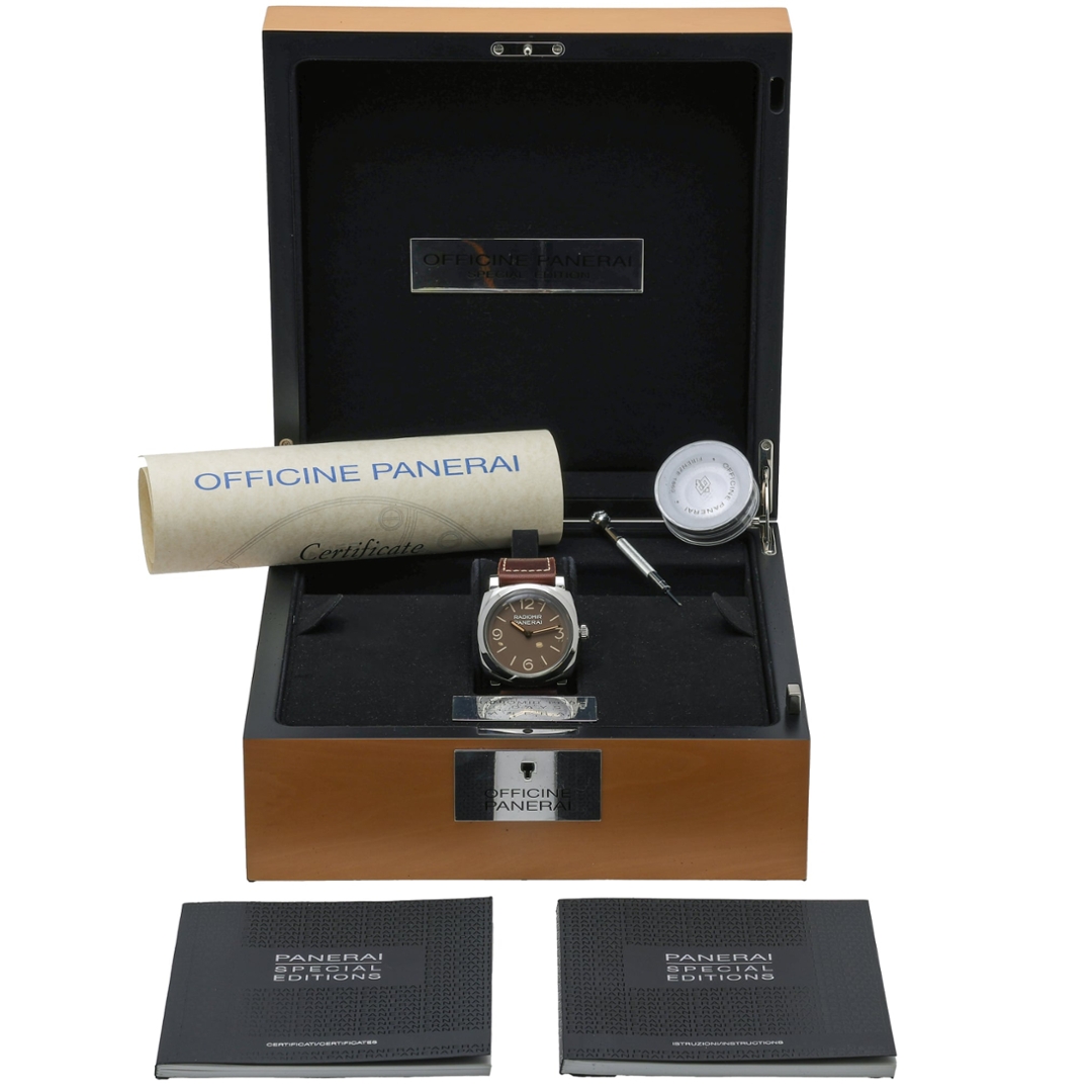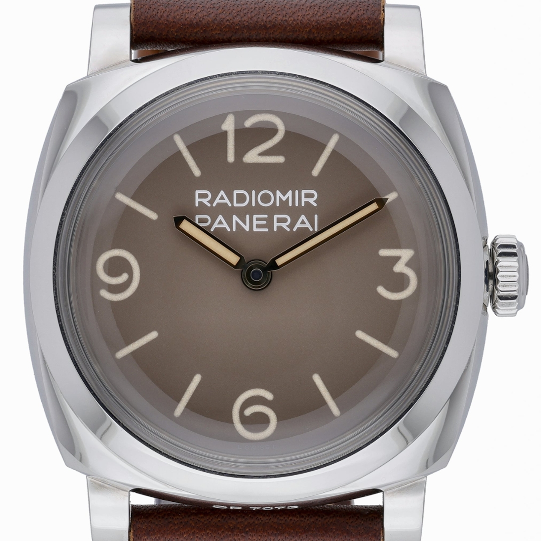 A Panerai Radiomir Watch, Brown Leather Strap with a Stainless Steel Case & Clasp on a Brown Dial