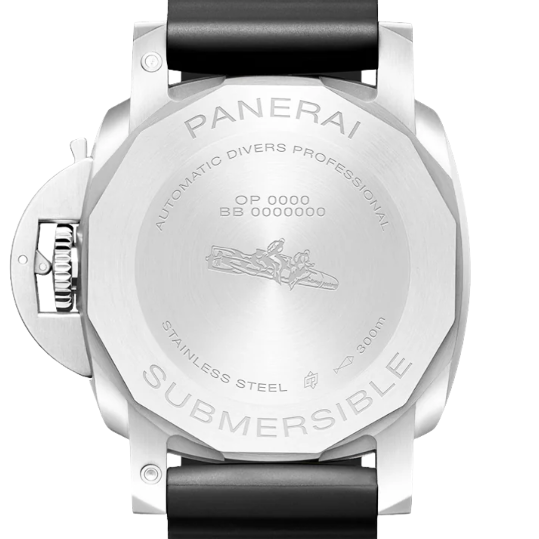 Fitted on a durable black rubber strap with a stainless steel clasp, this model is built for both performance and comfort. Powering the watch is the Panerai Calibre P.900 automatic movement, offering reliable precision and a robust power reserve, making it equally suited to active use or daily wear.