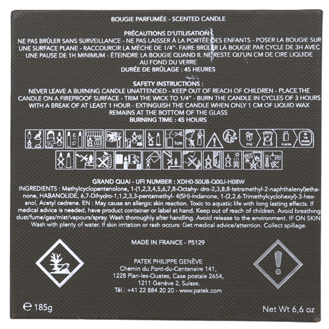 Designed as a lifestyle accessory, the candle features a clean white wax interior housed within a substantial glass container, offering both visual appeal and a sense of luxury. The balanced proportions and understated decoration reflect Patek Philippe’s philosophy of refinement and restraint, making it equally suitable for display or use in a refined living space.