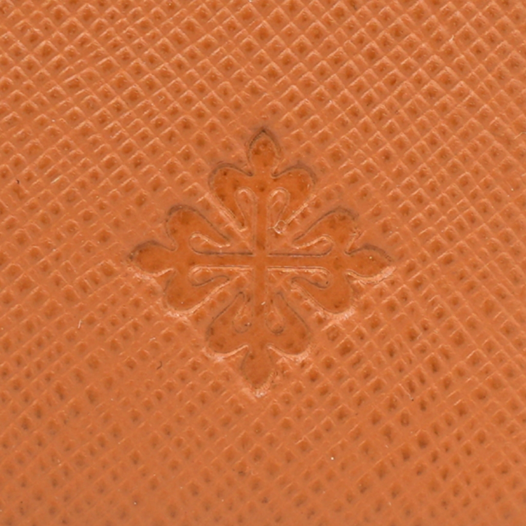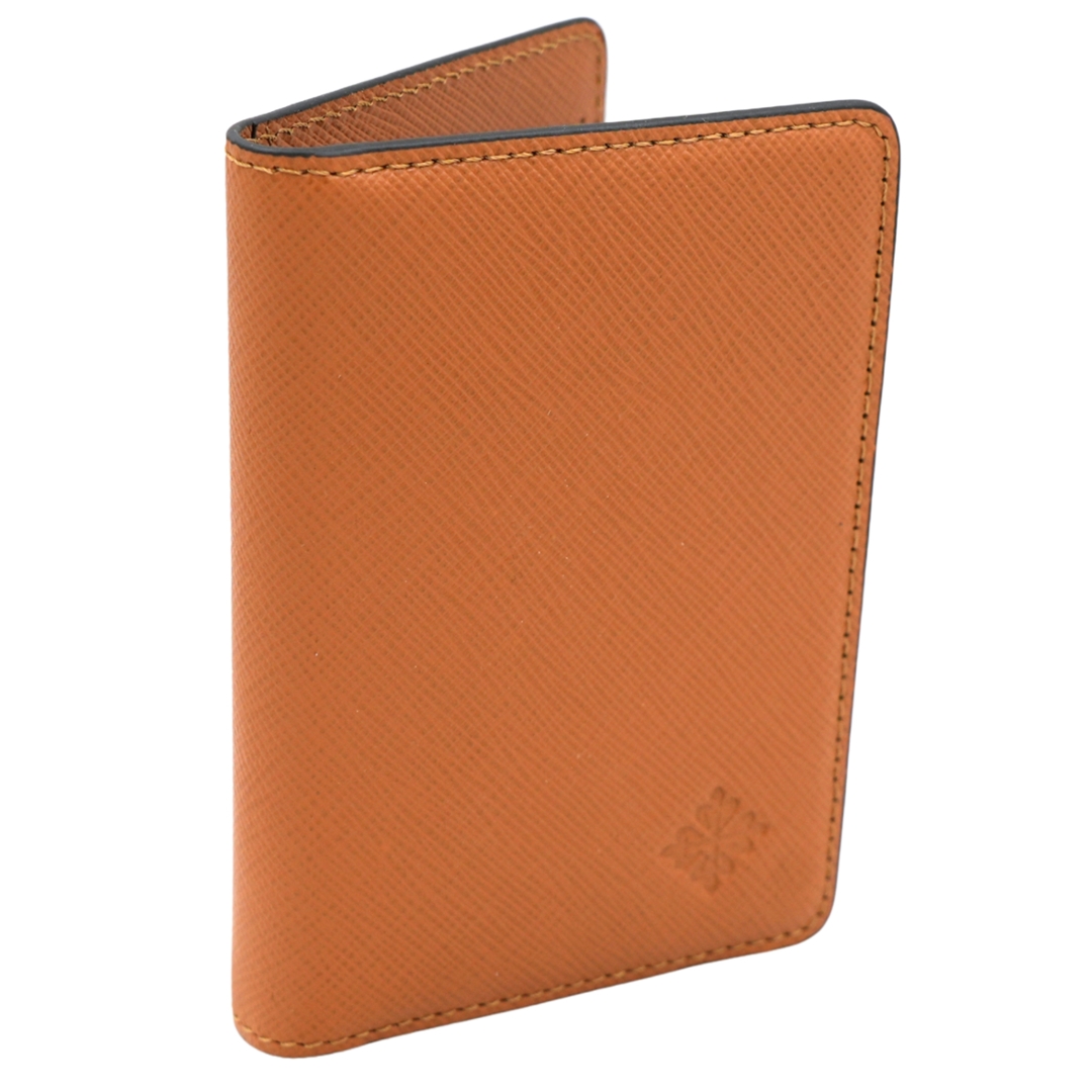 A refined Patek Philippe bi-fold wallet crafted in rich brown textured leather, showcasing the maison’s understated approach to luxury leather goods. The exterior features a clean, structured silhouette with fine stitching and a discreetly embossed Calatrava cross, offering subtle brand recognition without overt display. The warm brown tone and cross-grain finish give the wallet a timeless, versatile look.