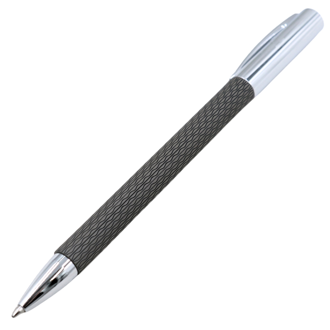 A Faber-Castell ballpoint pen finished in an elegant grey textured barrel, complemented by polished metal fittings that give the piece a clean, contemporary appearance. The subtle wave pattern adds visual interest while maintaining a professional and understated aesthetic suited to everyday or executive use.