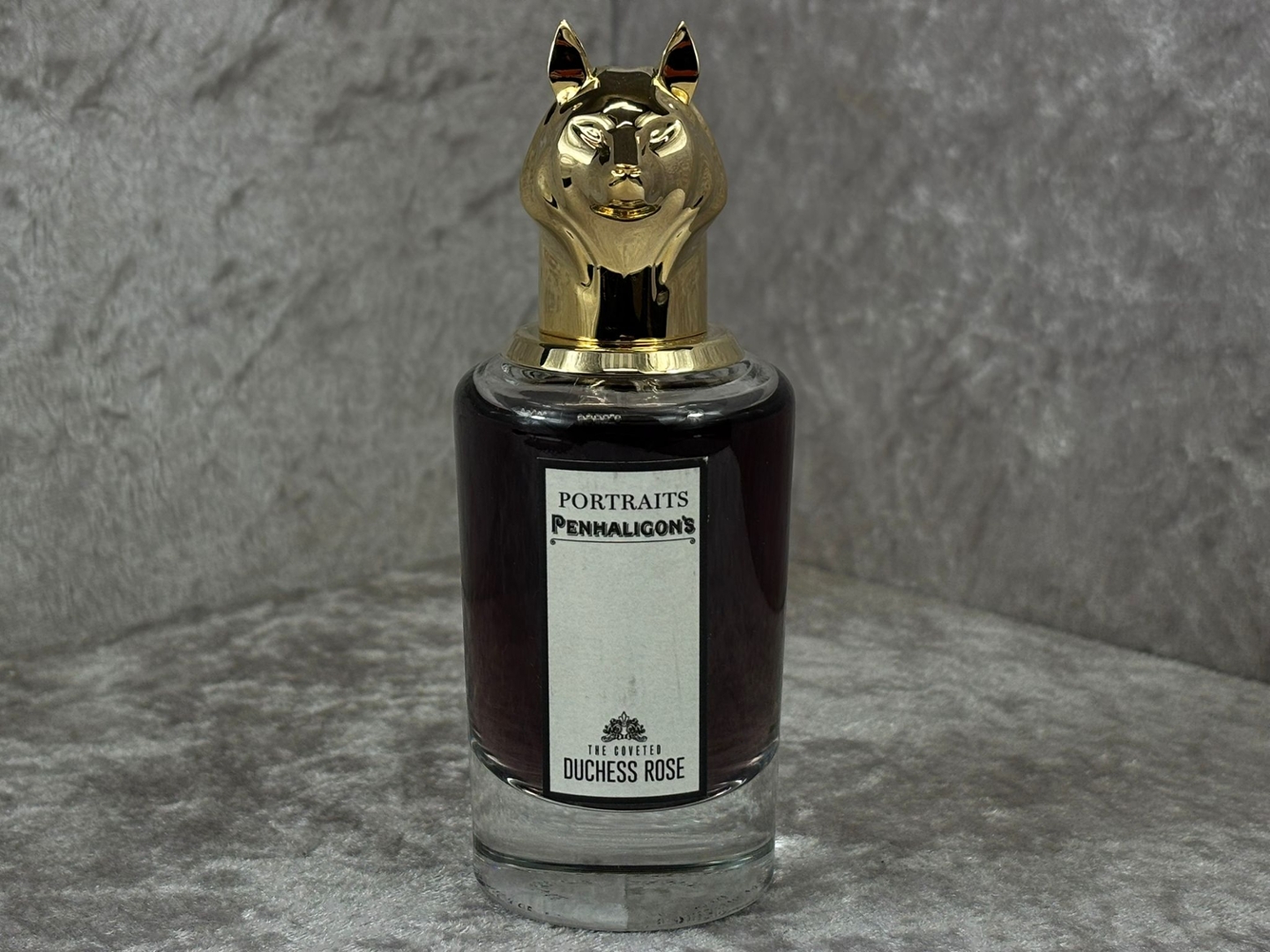 A bottle of Penhaligon- The Coveted Duchess Rose Eau De Parfum.