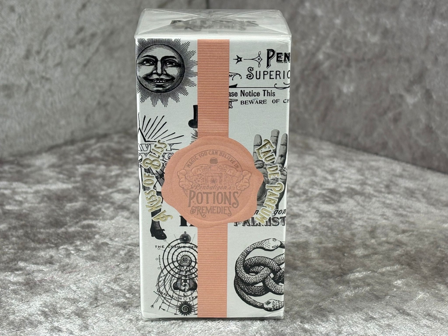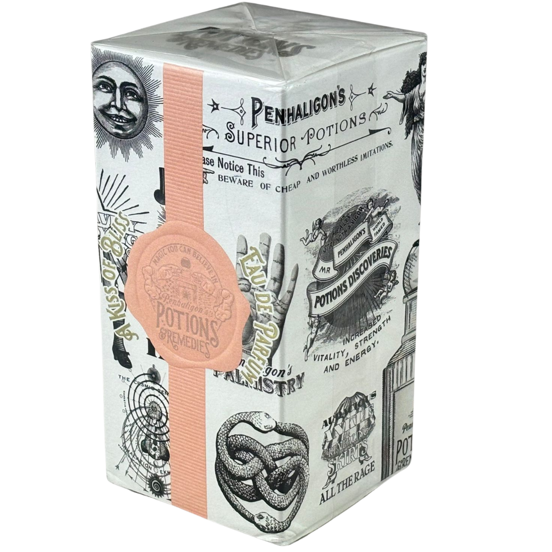 A bottle of Penhaligon's Potions & Remedies A Kiss of Bliss Eau De Parfum in a presentation box.