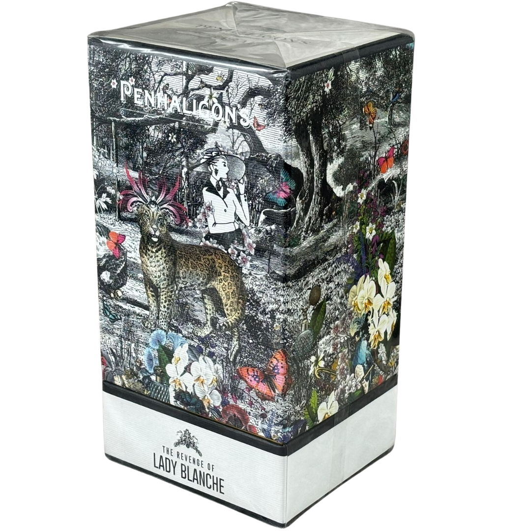 A bottle of Penhaligon's Portraits - The Revenge of Lady Blanche Eau De Parfum in a presentation box.
