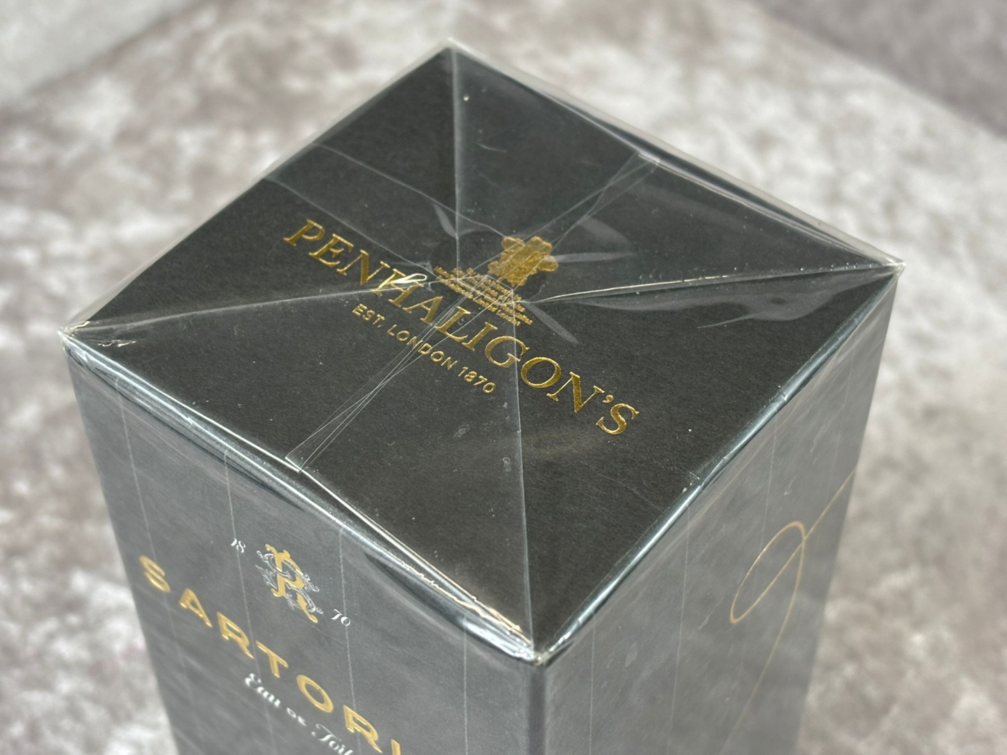 A bottle of Penhaligon's Sartorial Eau De Toilette in a presentation box.