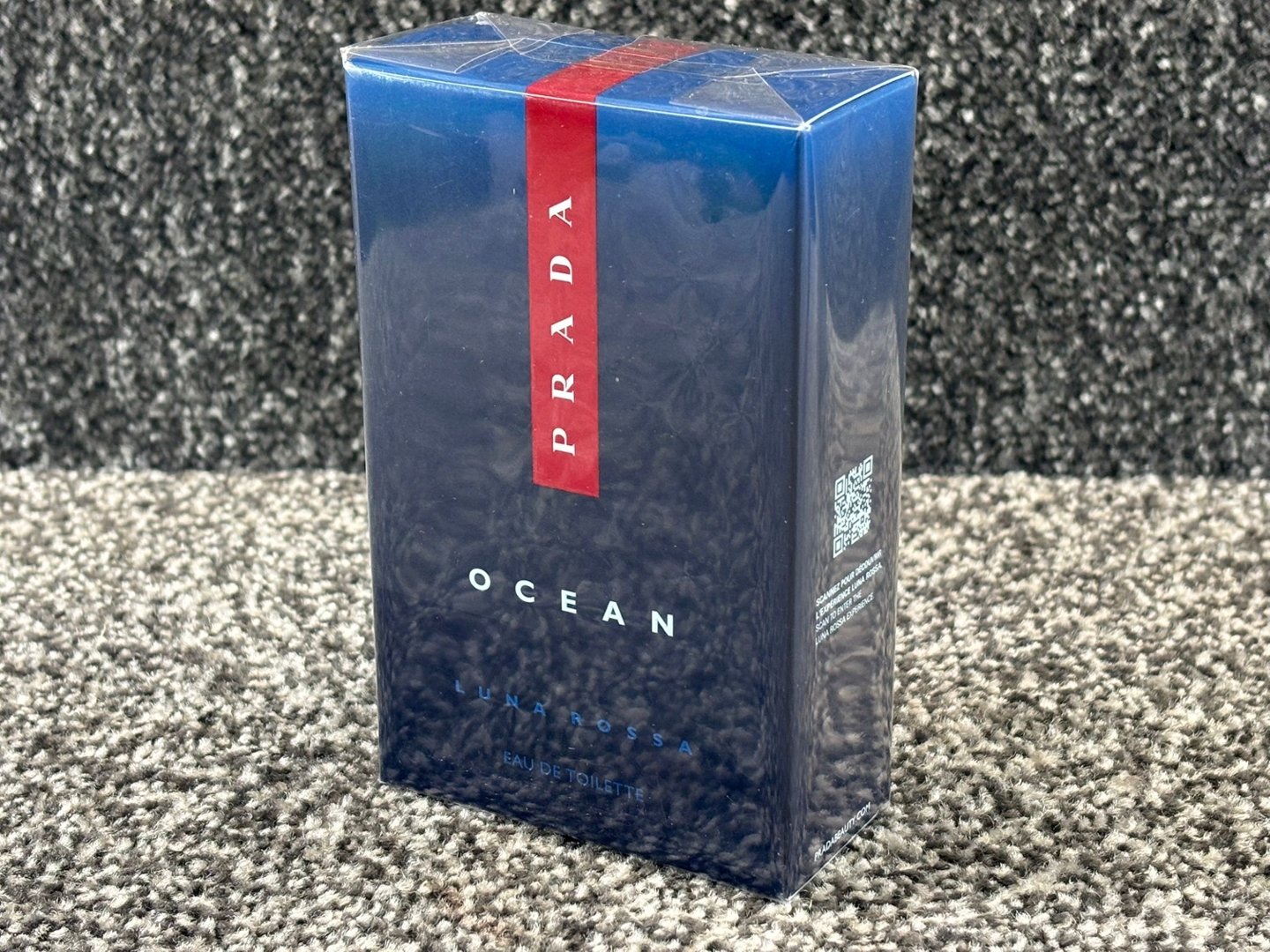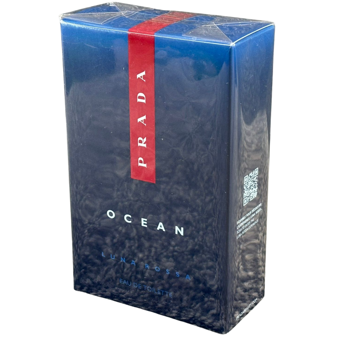 A bottle of Prada Luna Rossa Eau De Toilette, presented in its original presentation box and reflecting the precision, innovation and modern masculinity associated with the Prada name. Inspired by the world of competitive sailing, this fragrance delivers a clean, confident character with a distinctly contemporary edge.