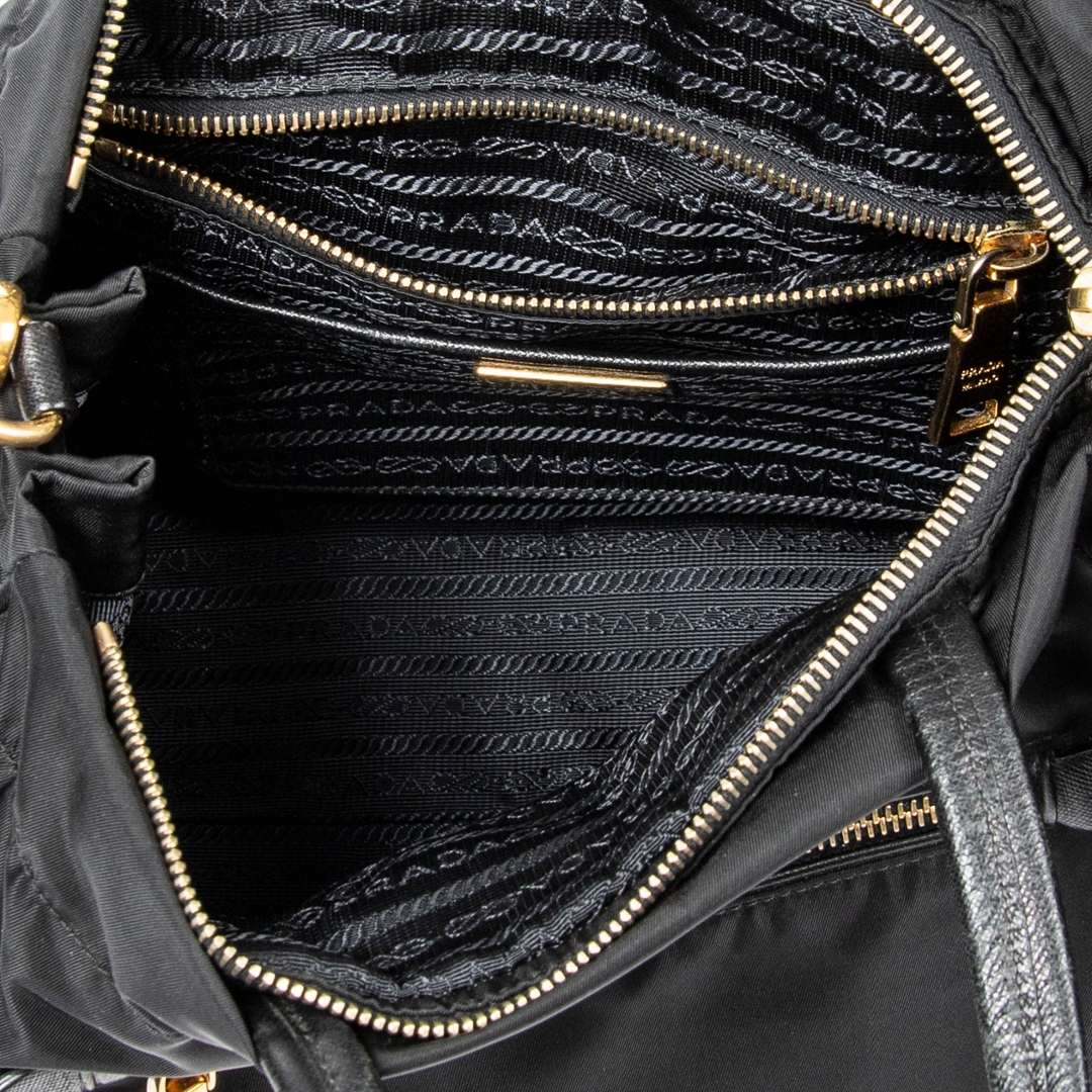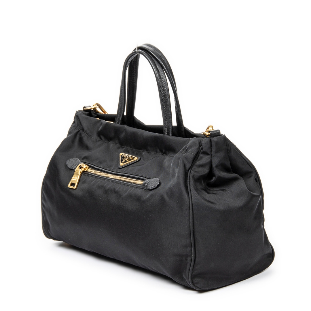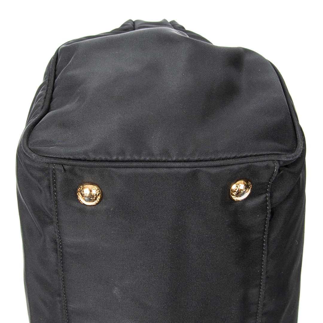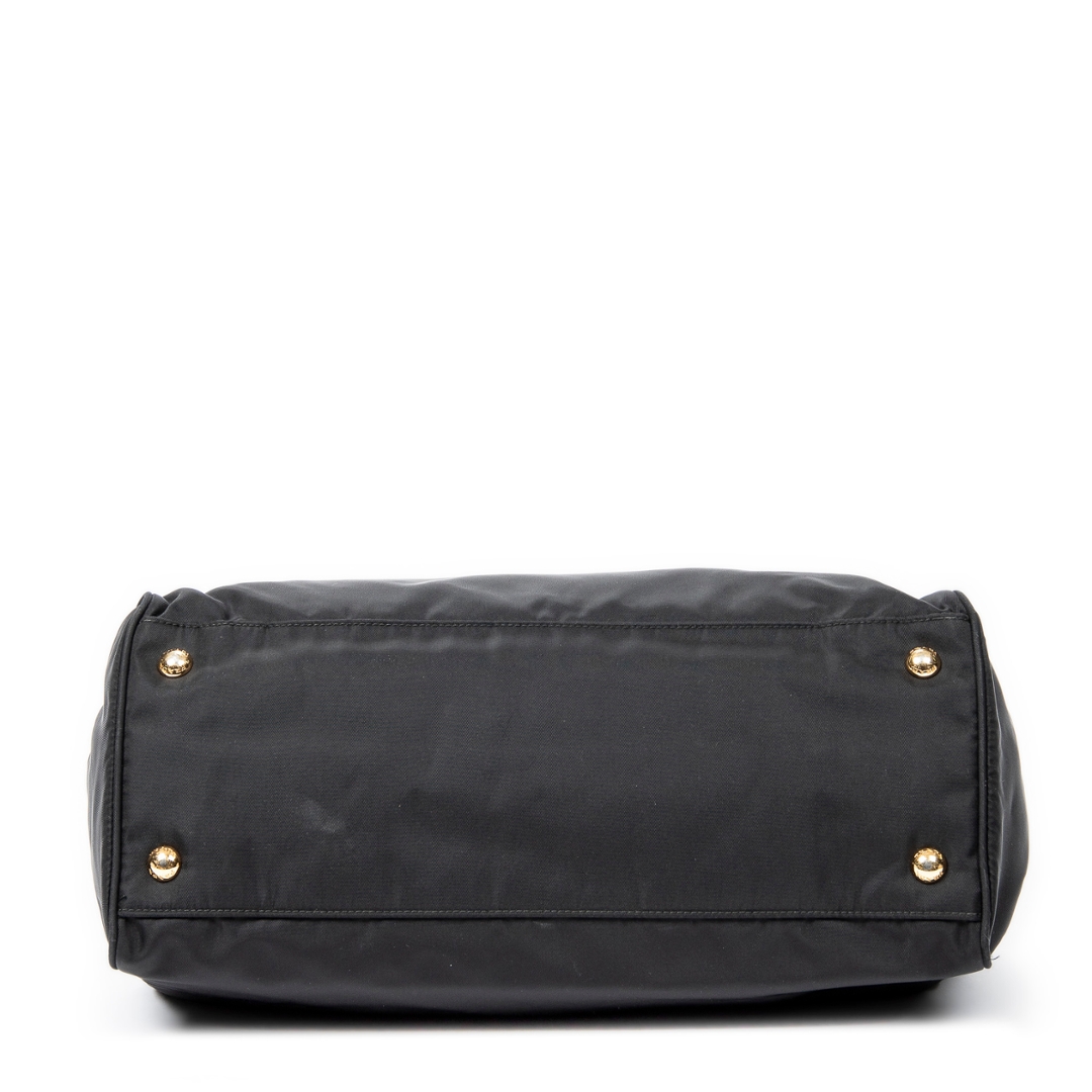 A vintage Prada black canvas 2 Way Zip Tote bag with a certificate of authenticity. Approximately 22cm height, 34cm width.