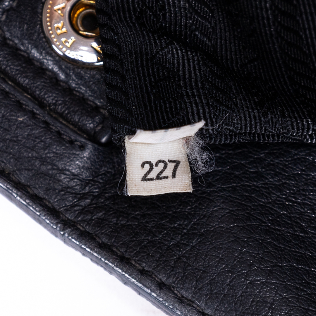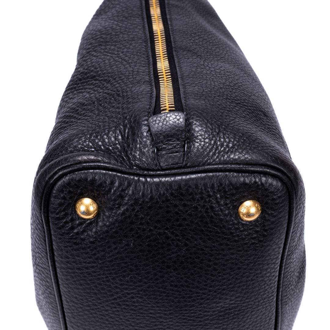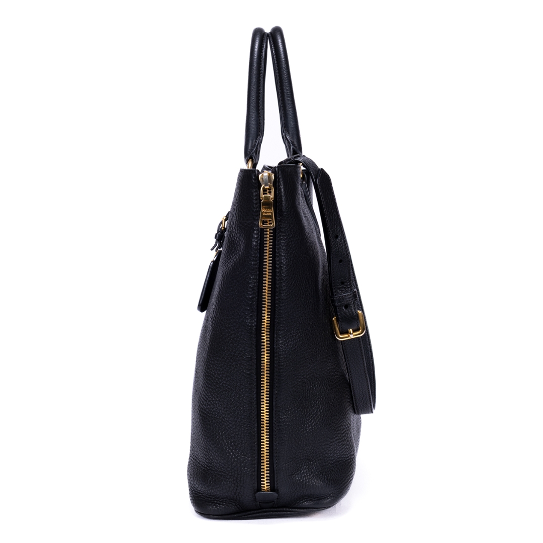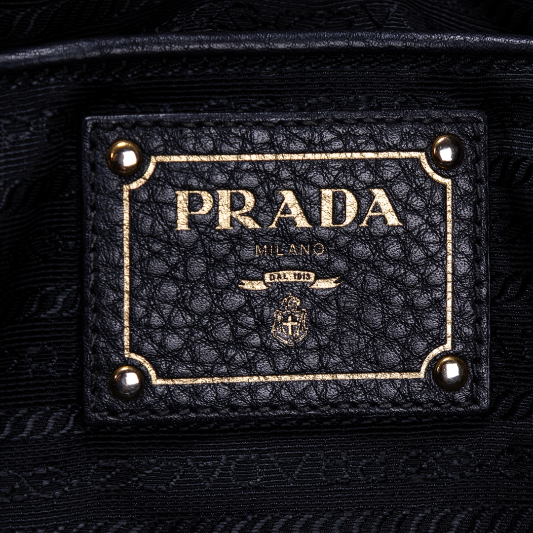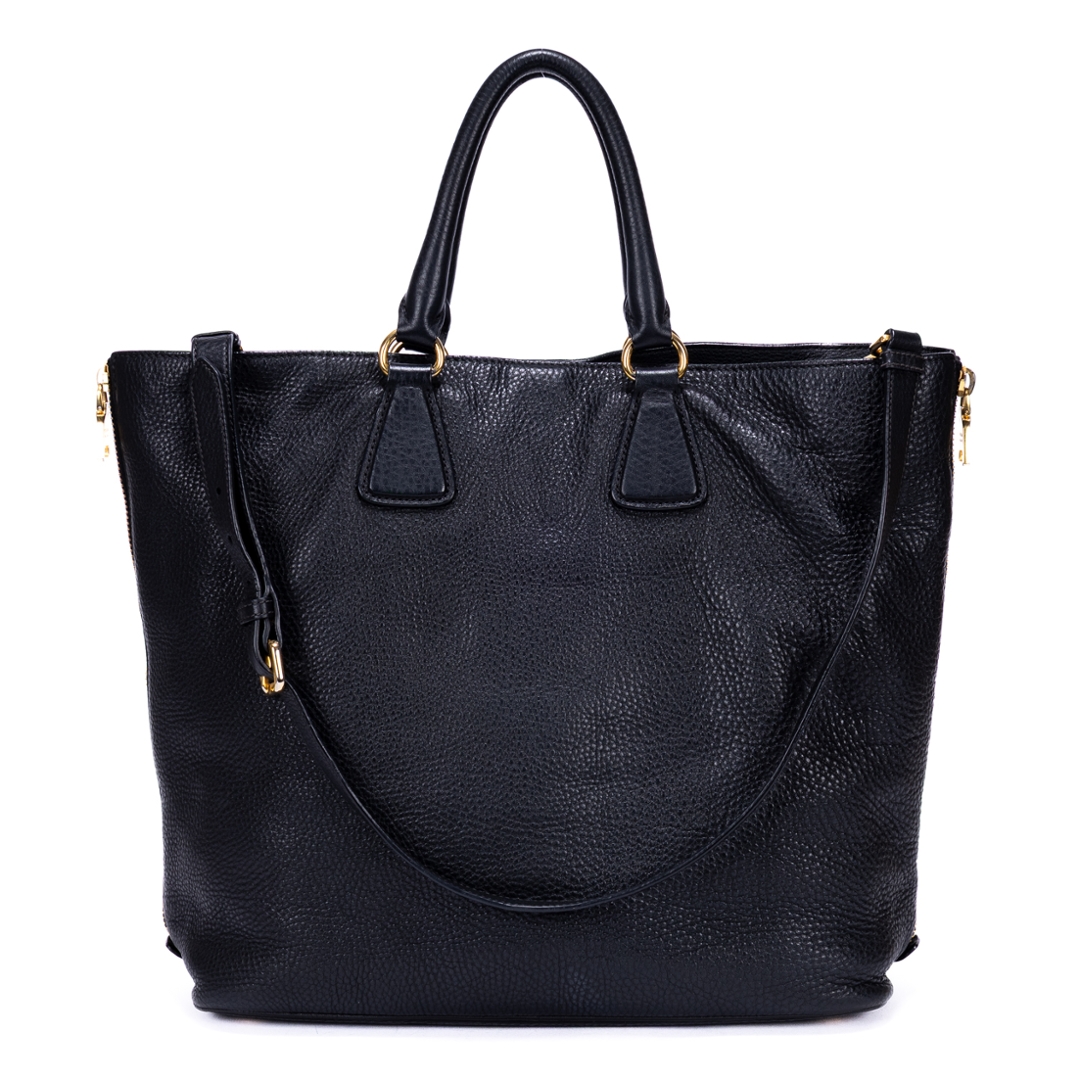 A vintage Prada black calf leather 2-WayTote bag with a certificate of authenticity. Approximately 34cm height, 42cm width.