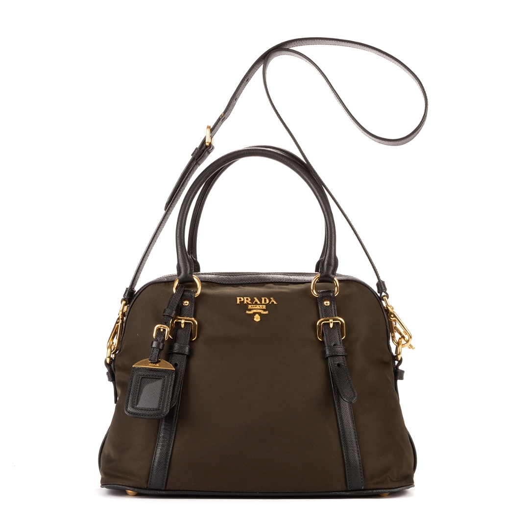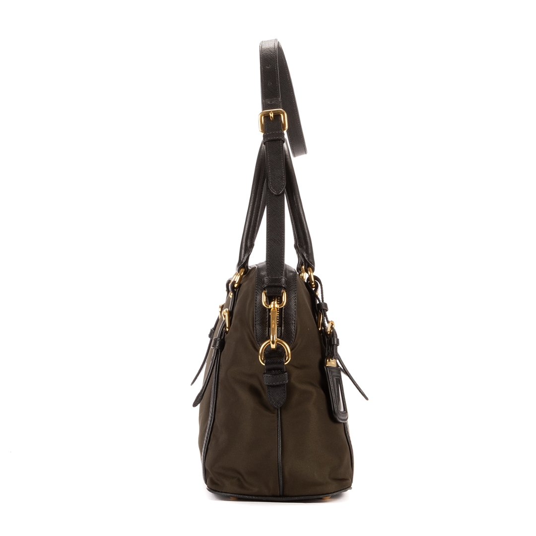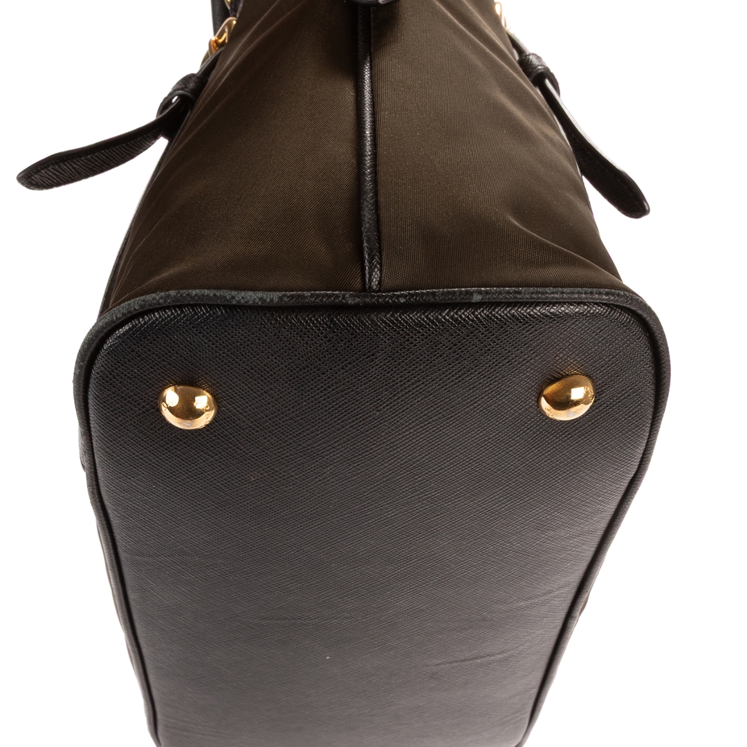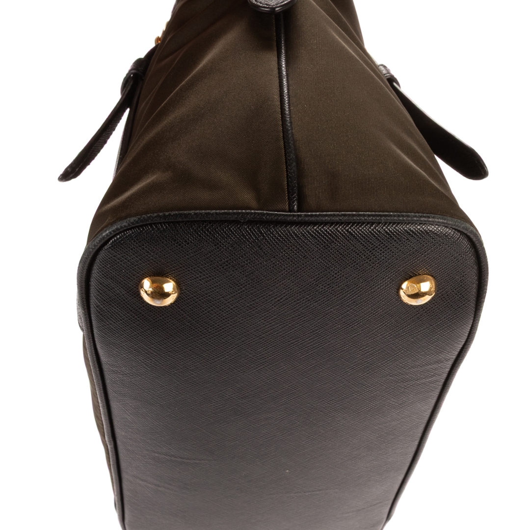 A vintage Prada olive green/black nylon Bauletto bag with a certificate of authenticity. Approximately 24cm height, 33cm width.