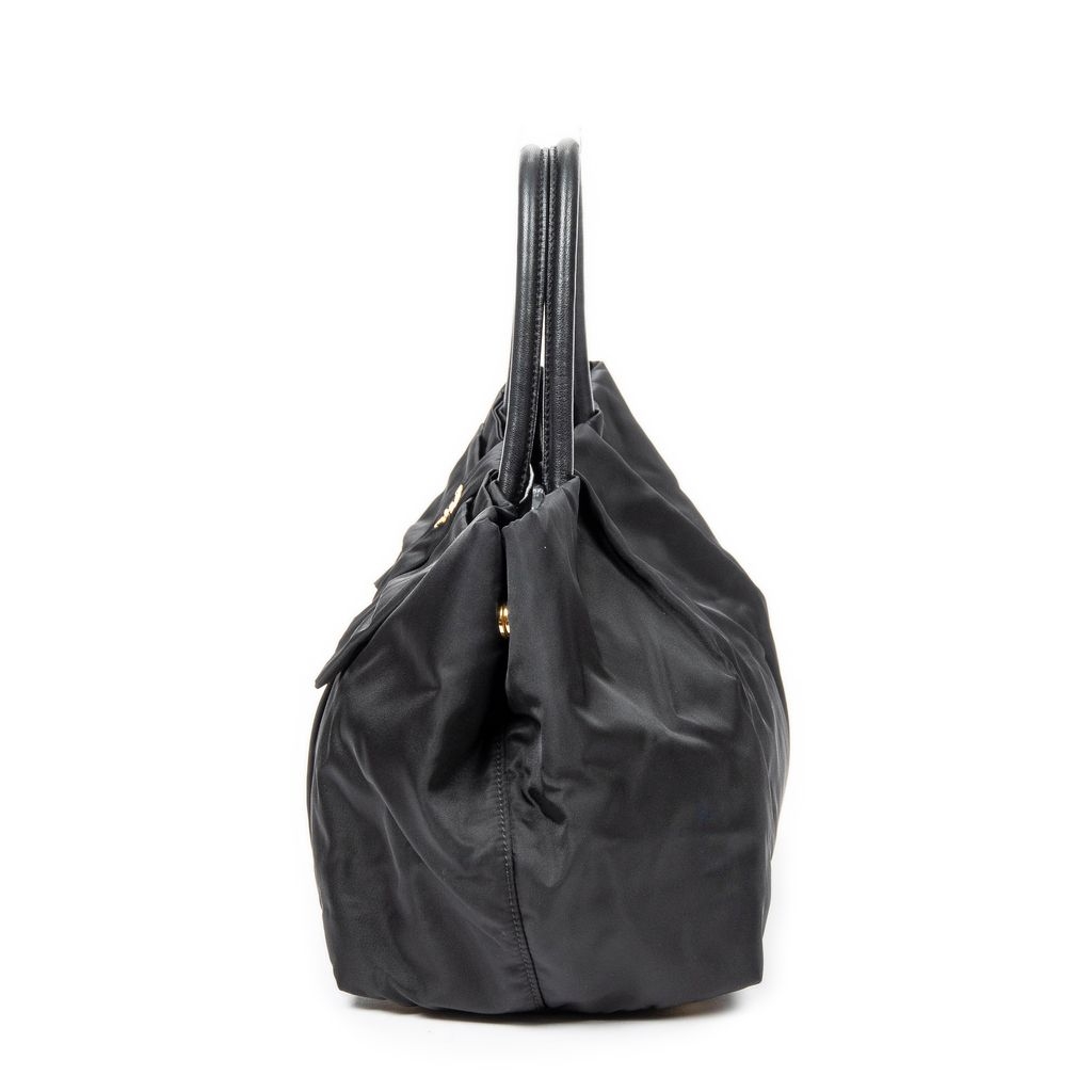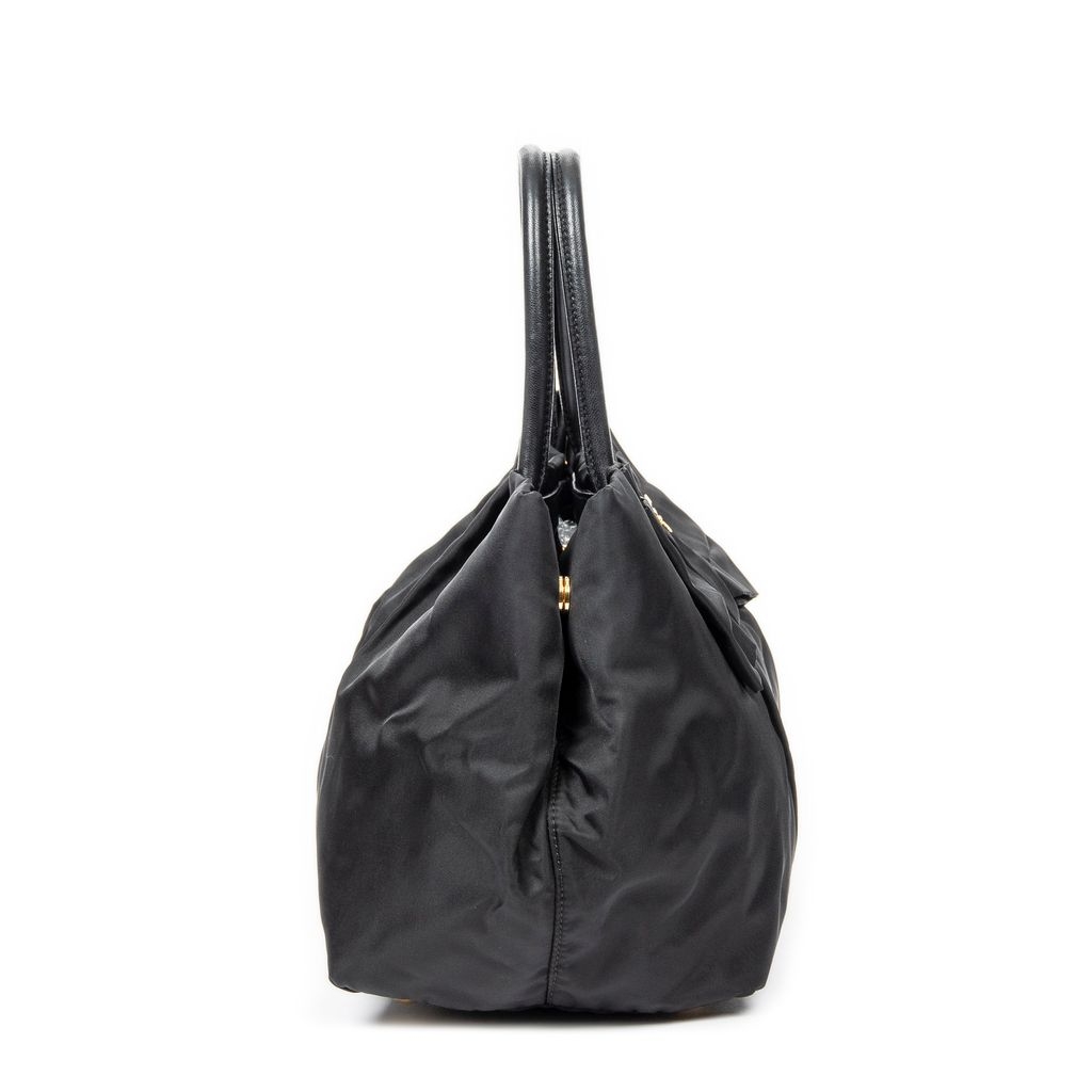 A vintage Prada black canvas Bow Tote bag with a certificate of authenticity, Approximately 22cm height, 27cm width.
