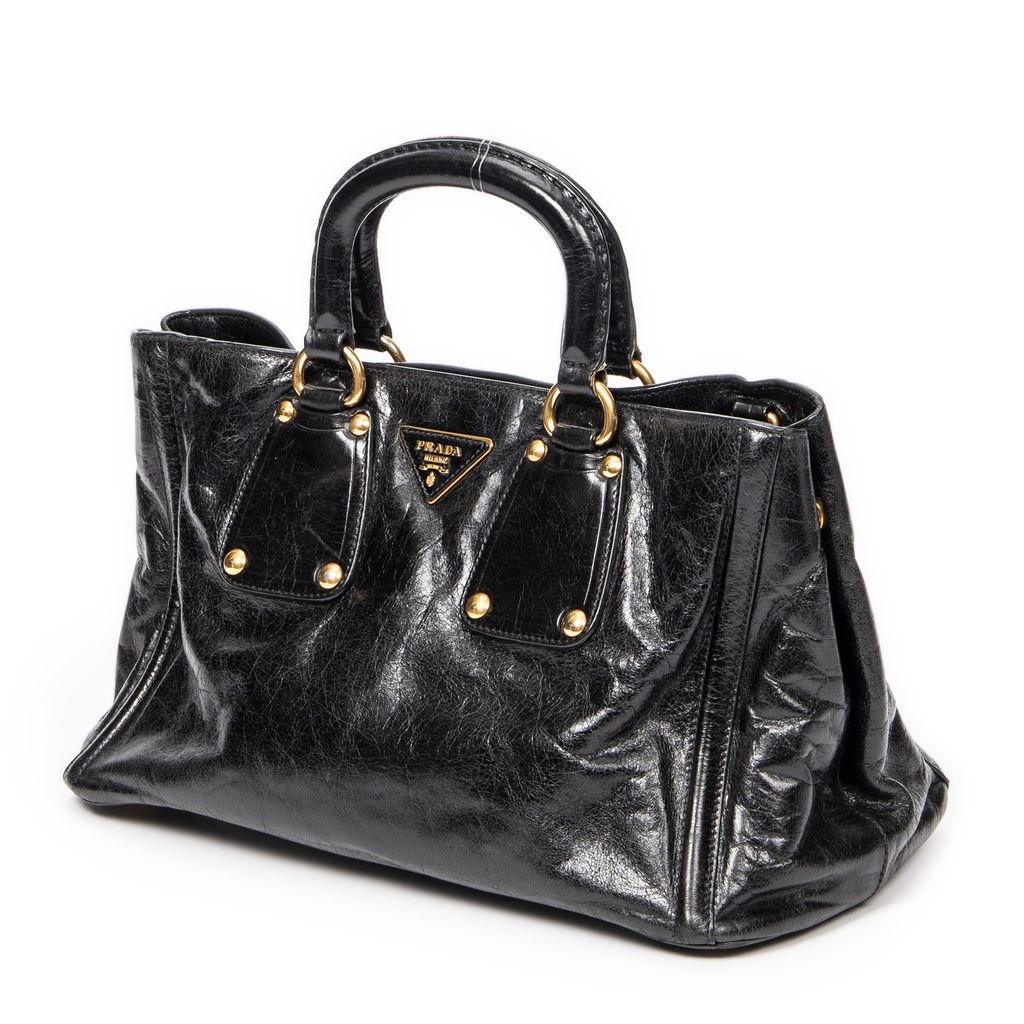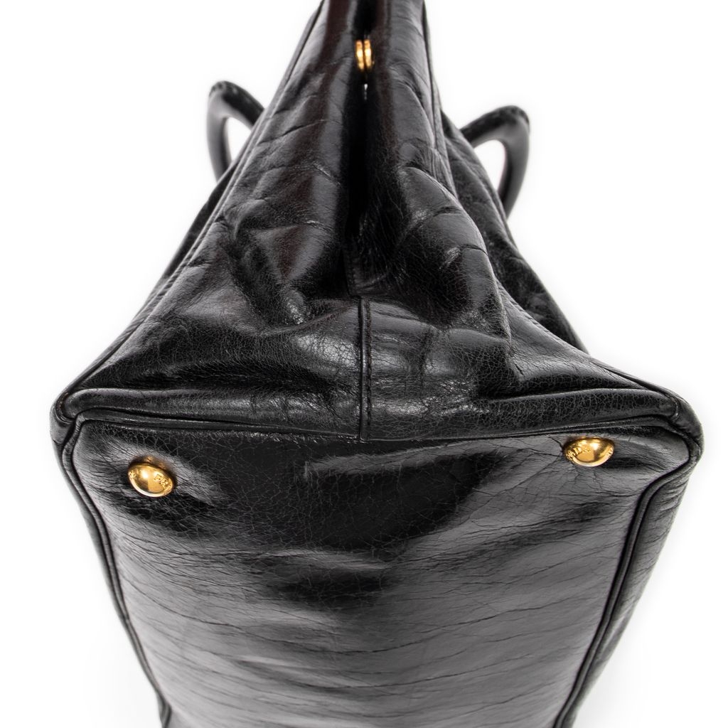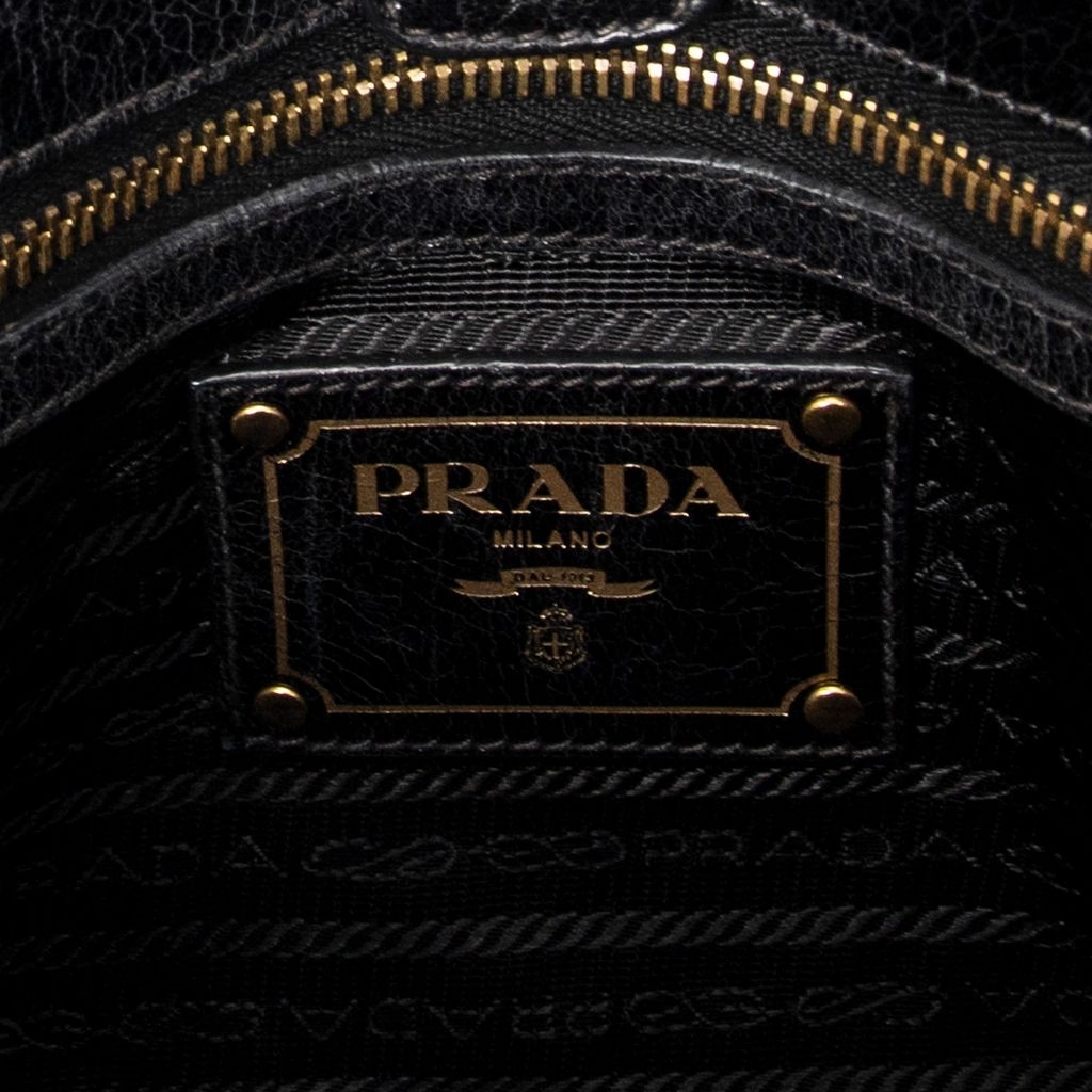 A vintage Prada black calf leather Convertible Tote bag with a certificate of authenticity, Approximately 21cm height, 34cm width.