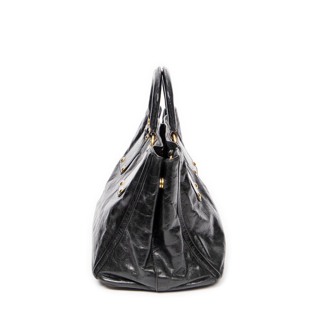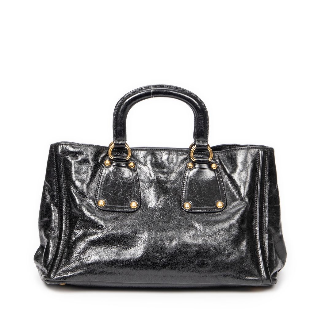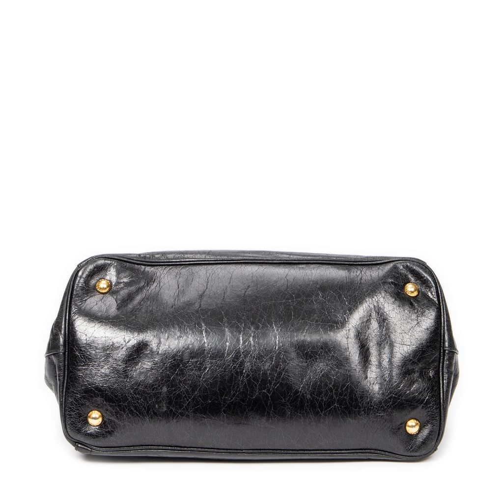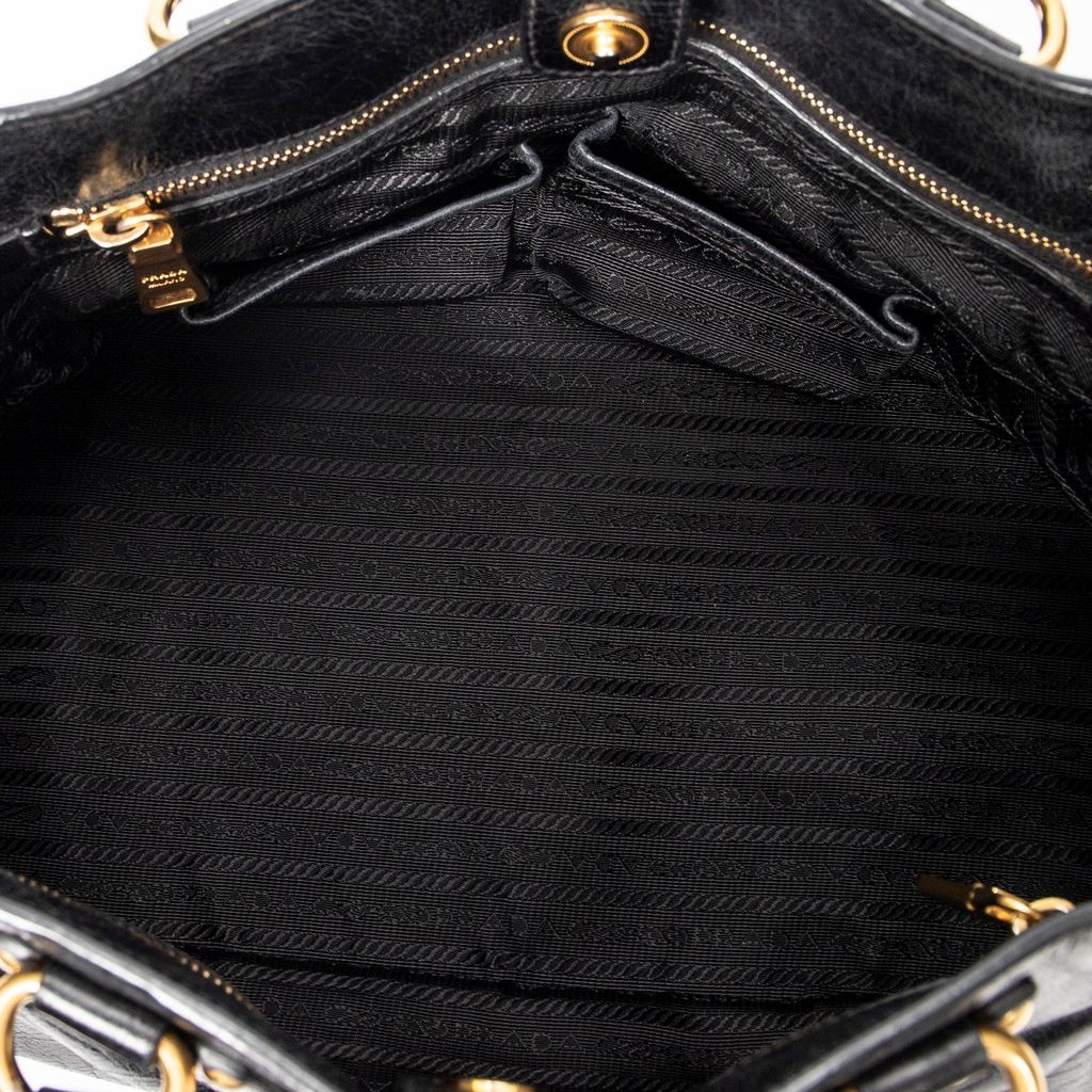 A vintage Prada black calf leather Convertible Tote bag with a certificate of authenticity, Approximately 21cm height, 34cm width.
