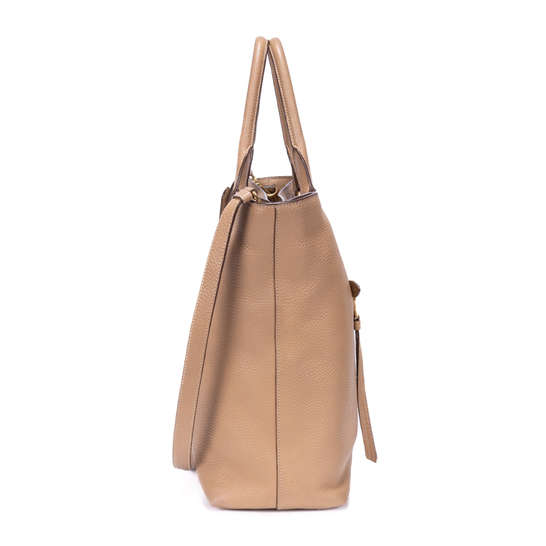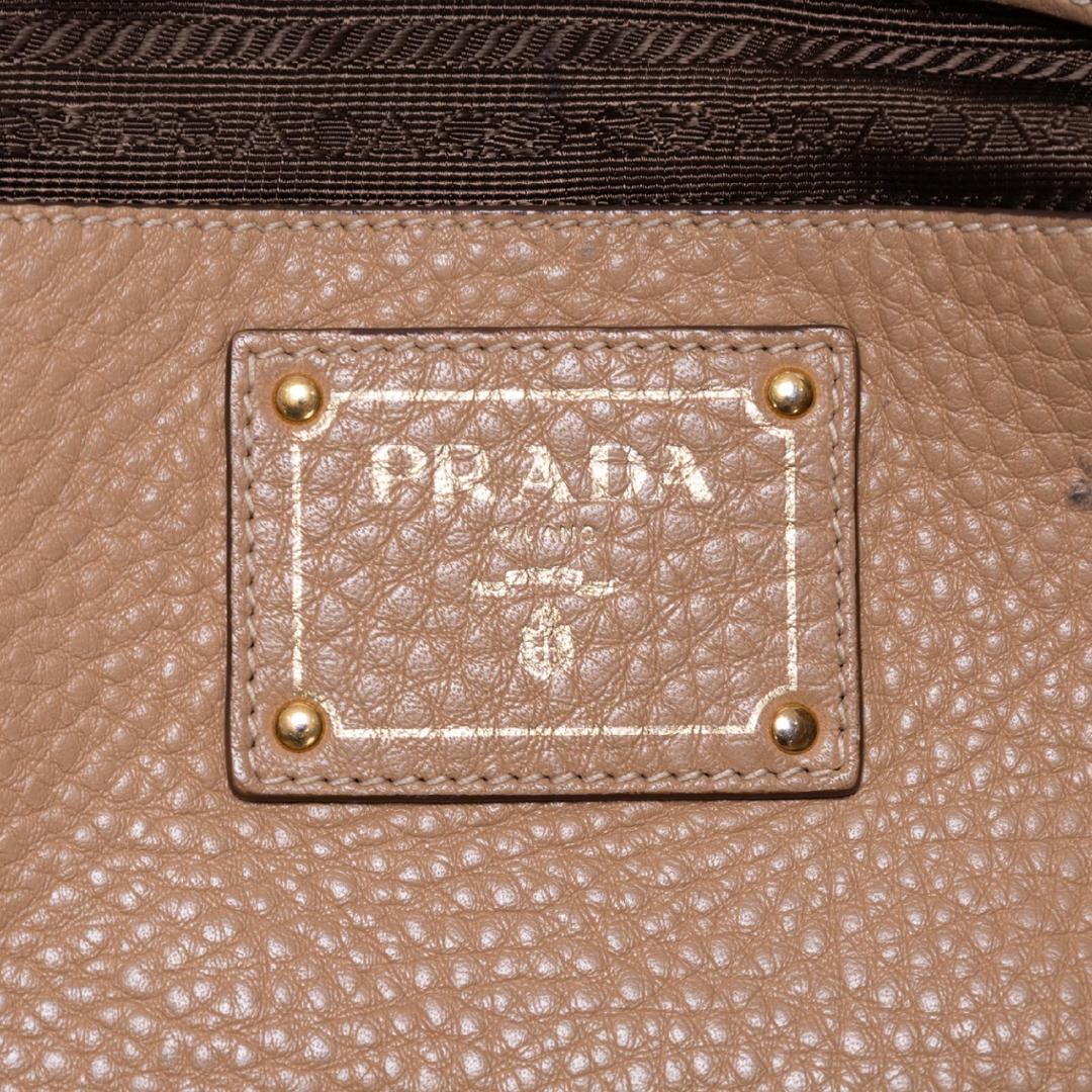 A vintage Prada beige calf leather Front Zip Pocket Tote bag with a certificate of authenticity. Approximately 32cm height, 35cm width.
