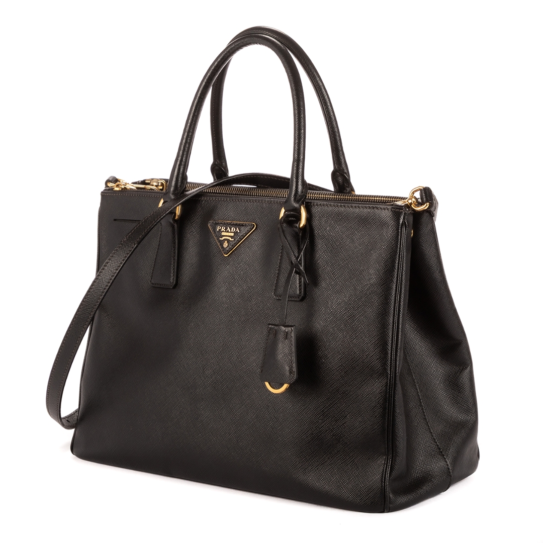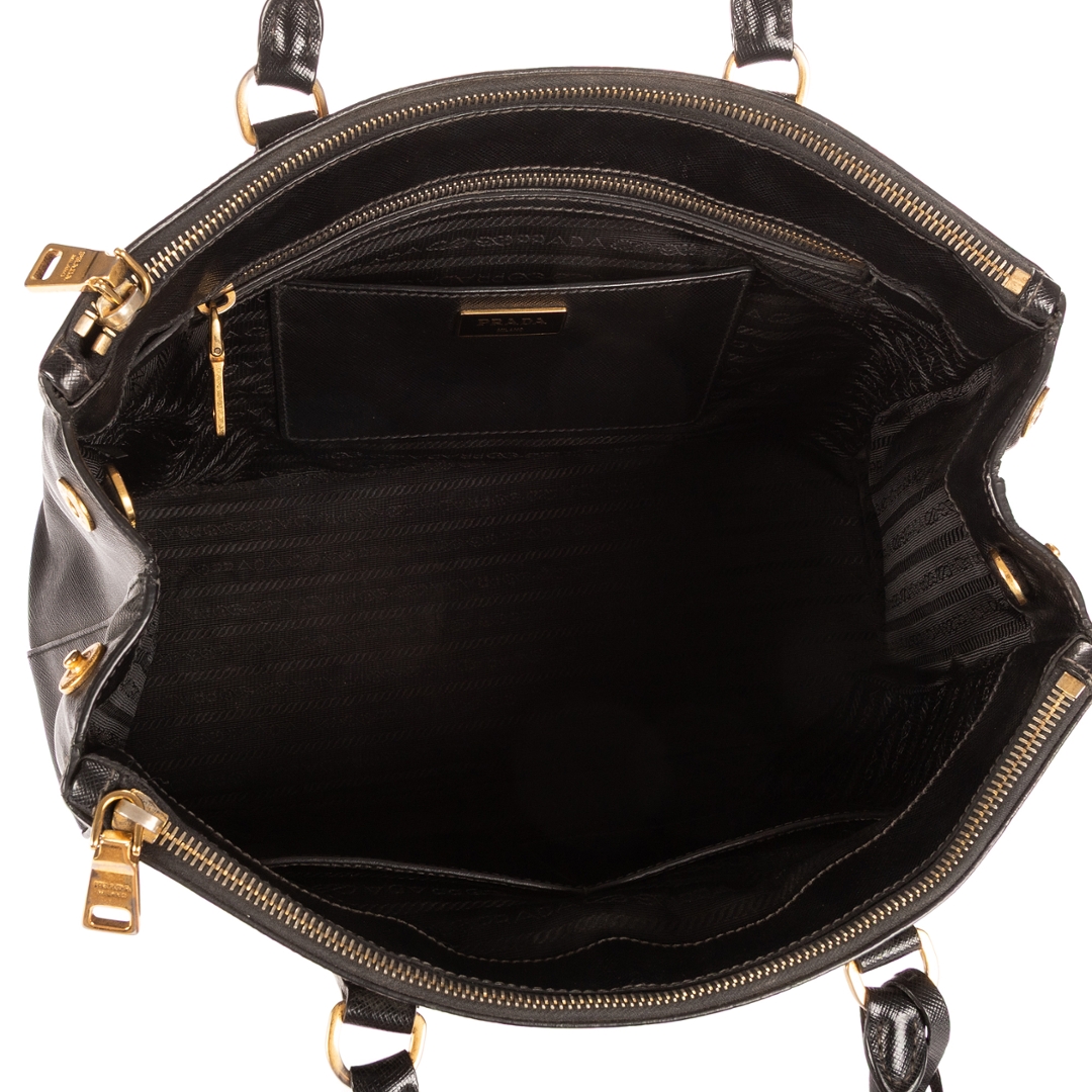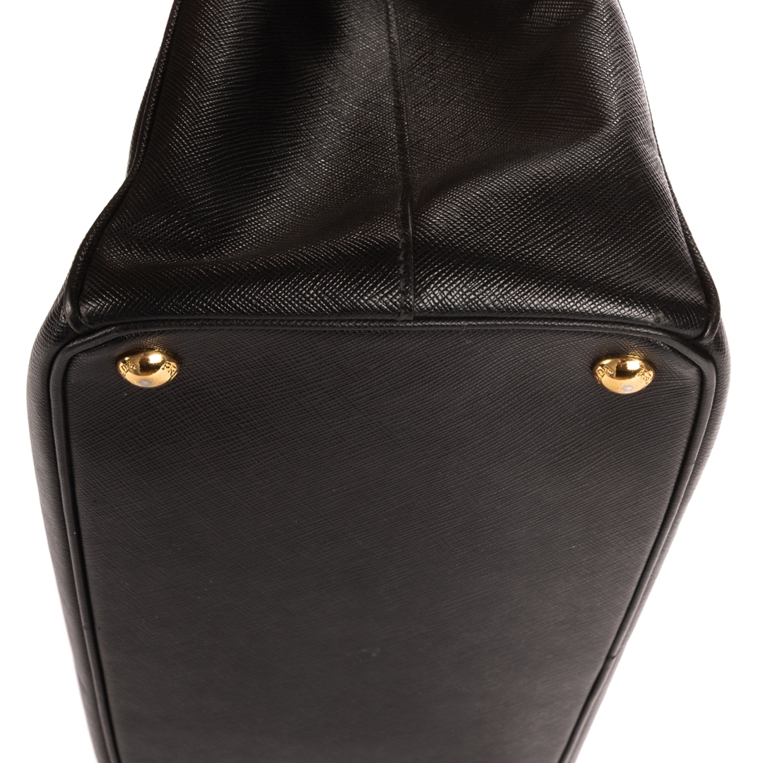 A vintage Prada black calf leather Galleria bag with a certificate of authenticity, Approximately 25cm height, 35cm width.