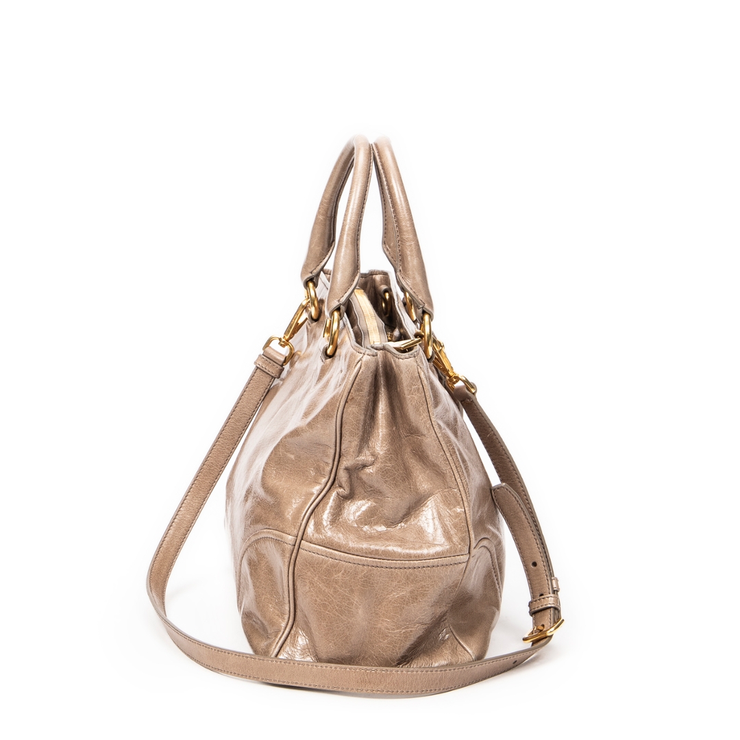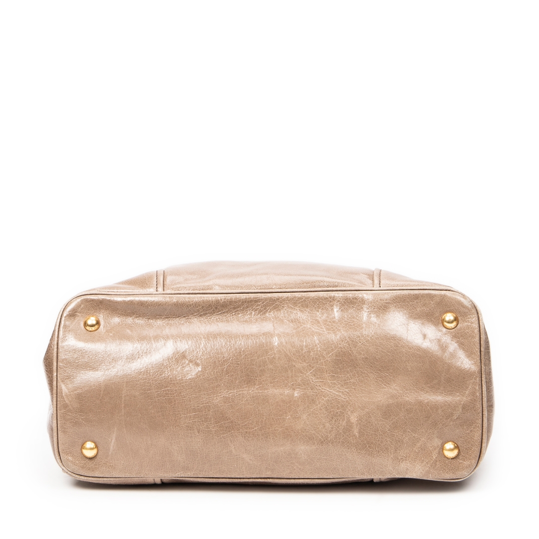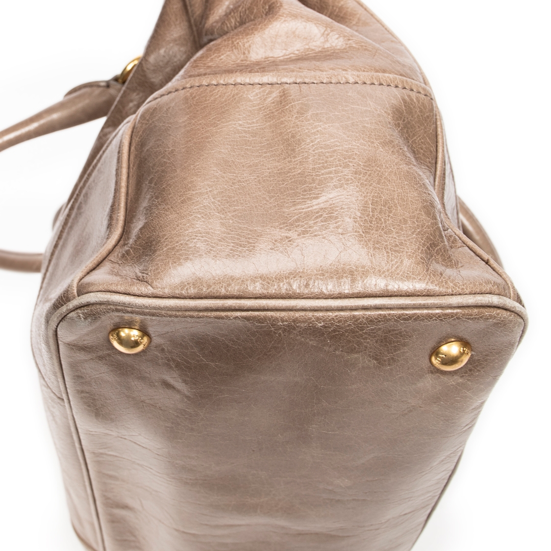 A vintage Prada brown calf leather Horizontal Shopping Tote bag with a certificate of authenticity. Approximately 25cm height, 35cm width.
