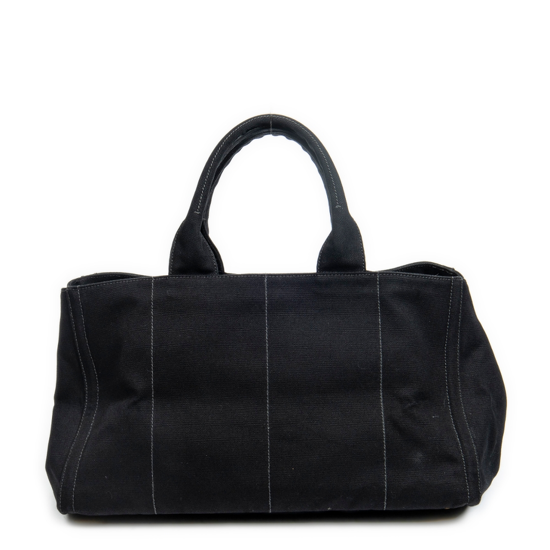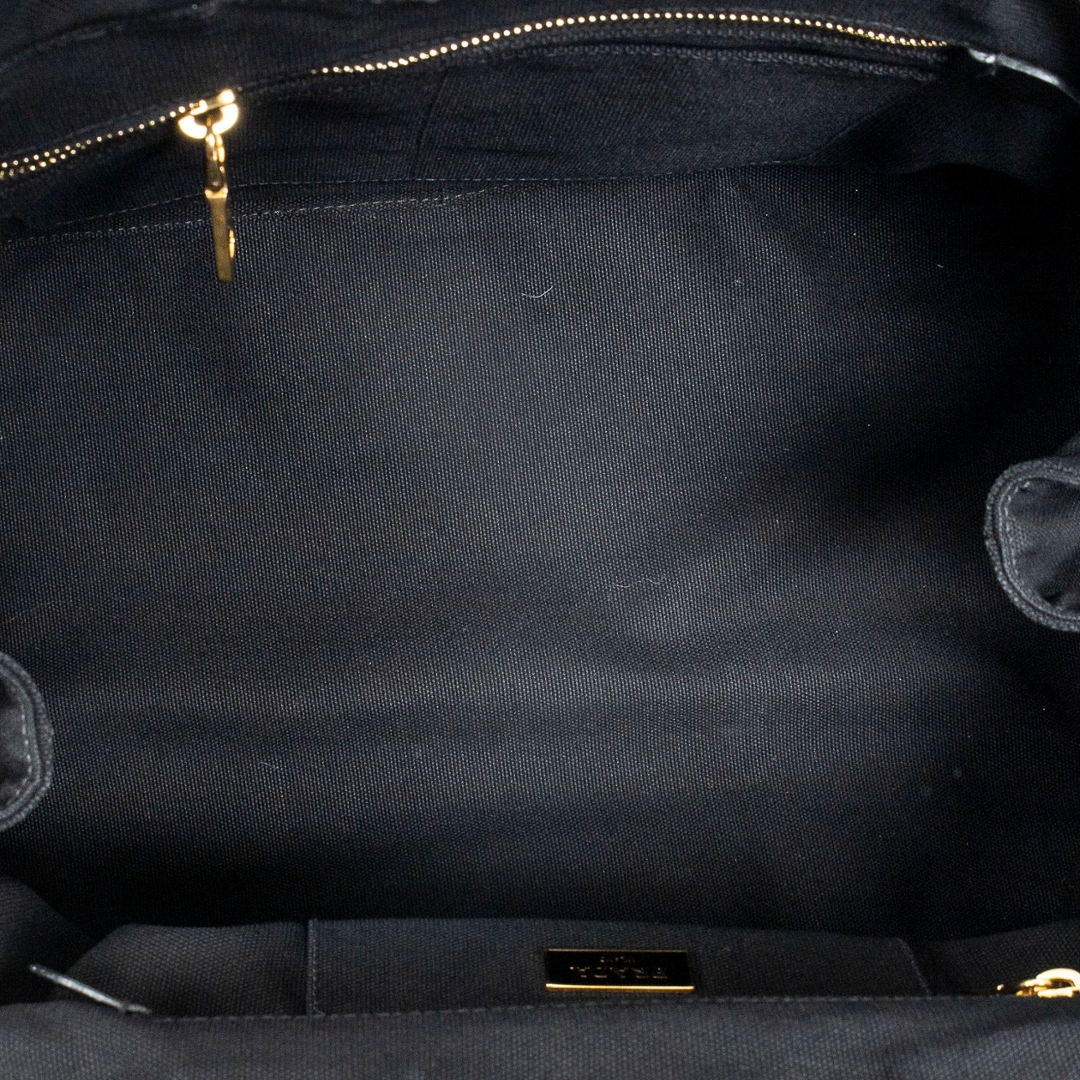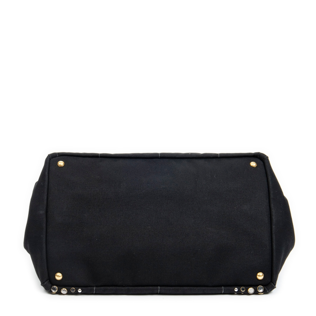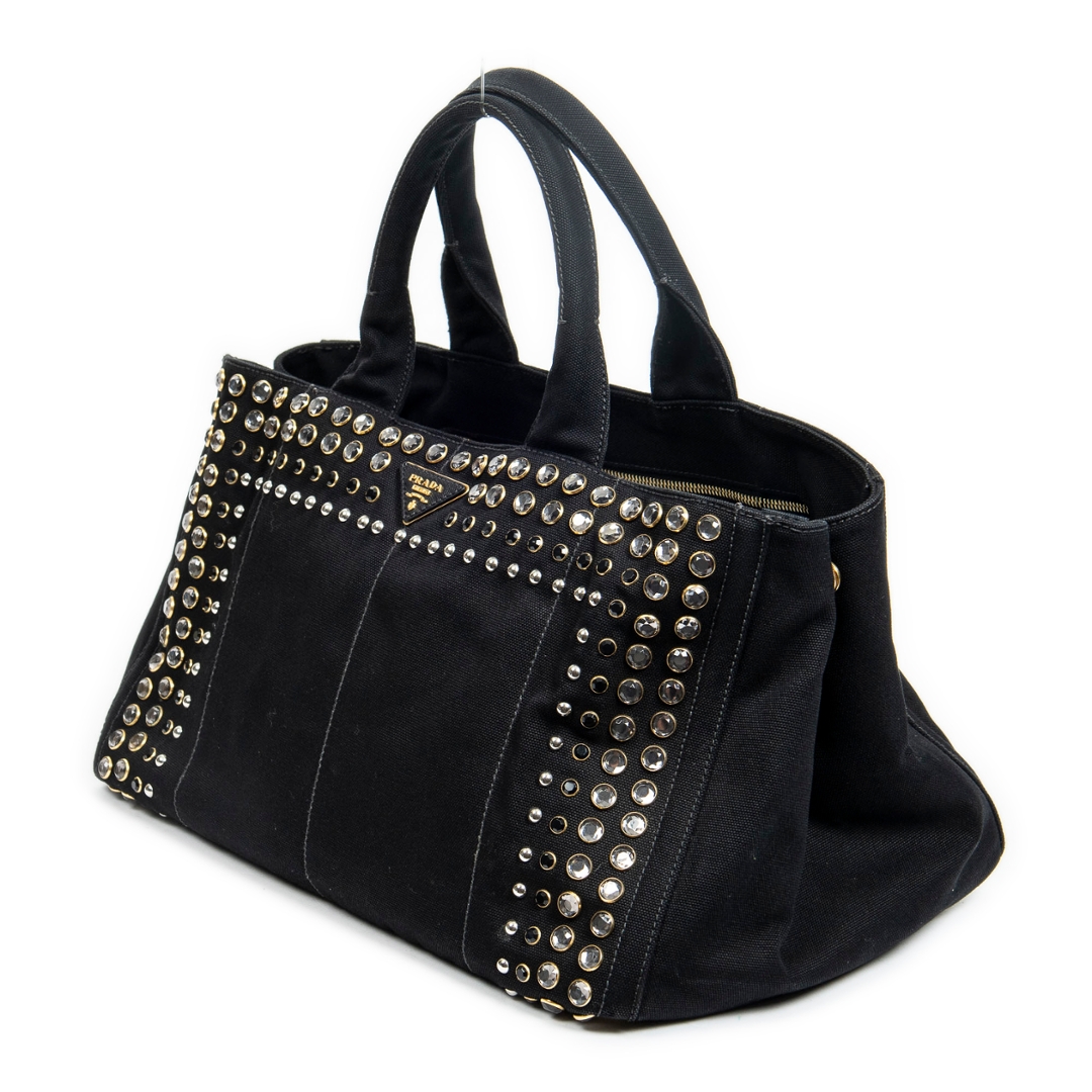 A vintage Prada black canvas Large Rhinestone Canapa Tote bag with a certificate of authenticity, Approximately 24cm height, 40cm width.