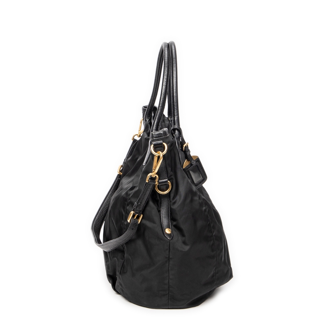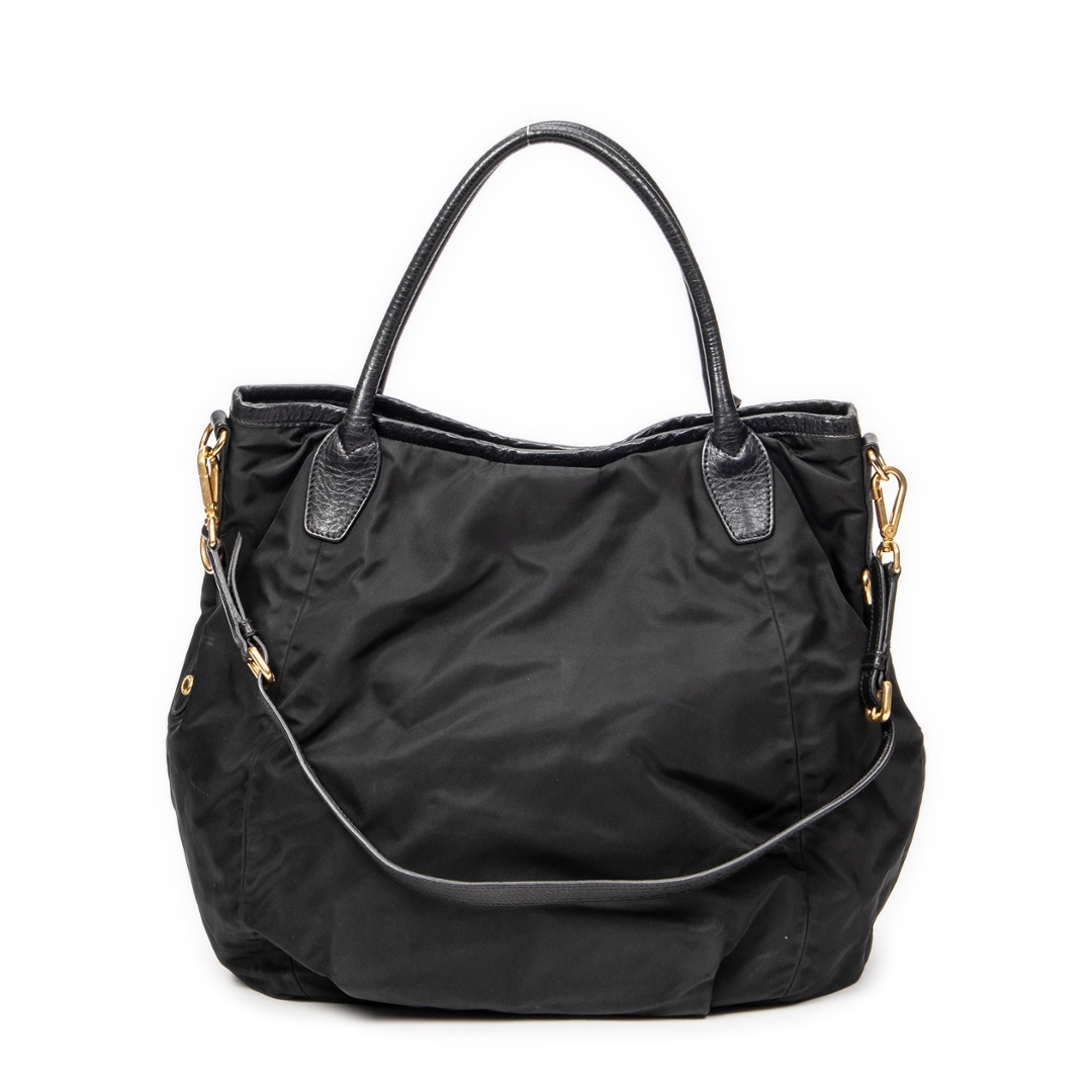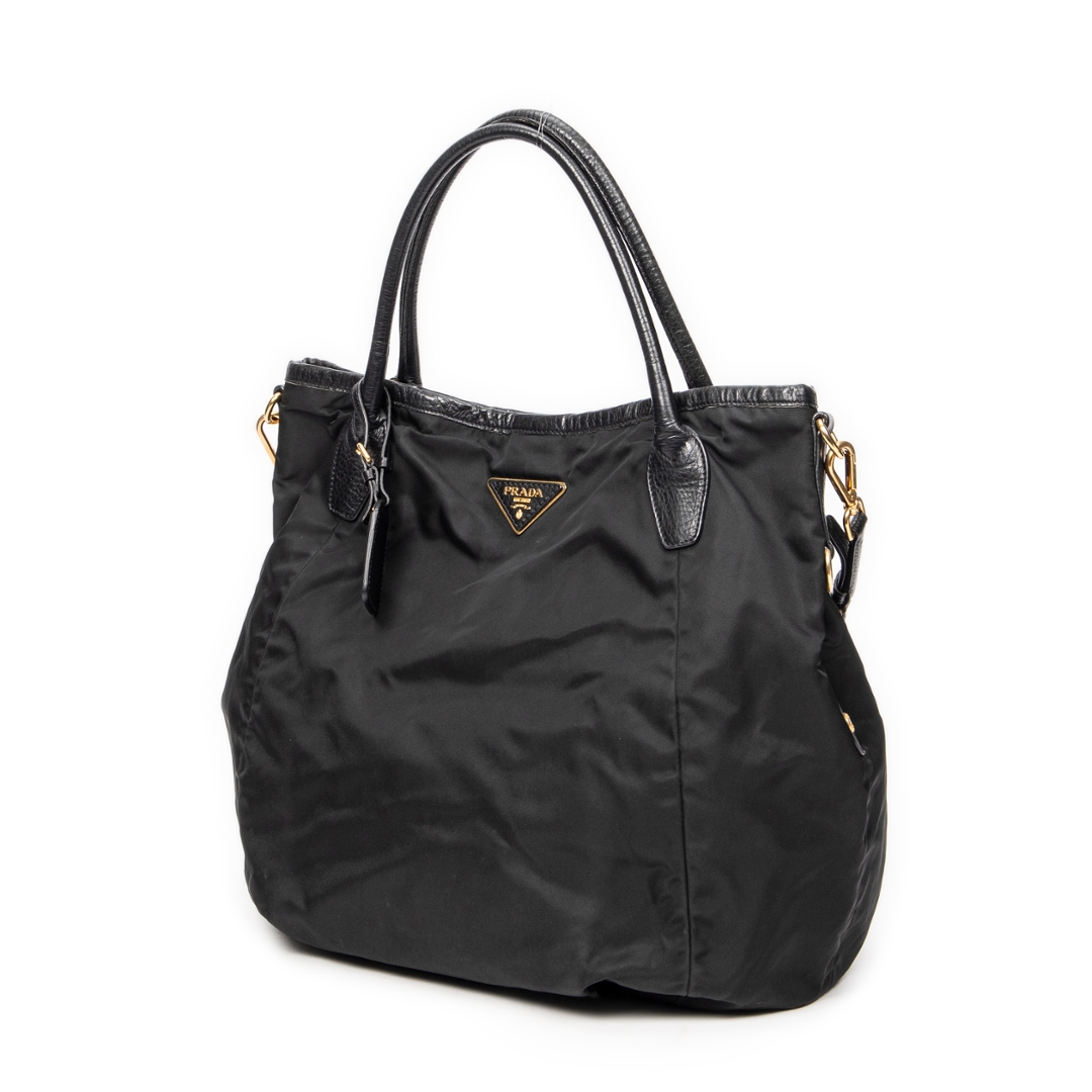 A vintage Prada black canvas Medium Shopping Tote bag with a certificate of authenticity. Approximately 38cm height, 32cm width.