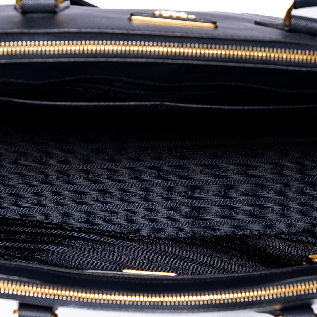 - > Prada Saffiano Lux Double Zip Large Tote (OAG8589SGO).