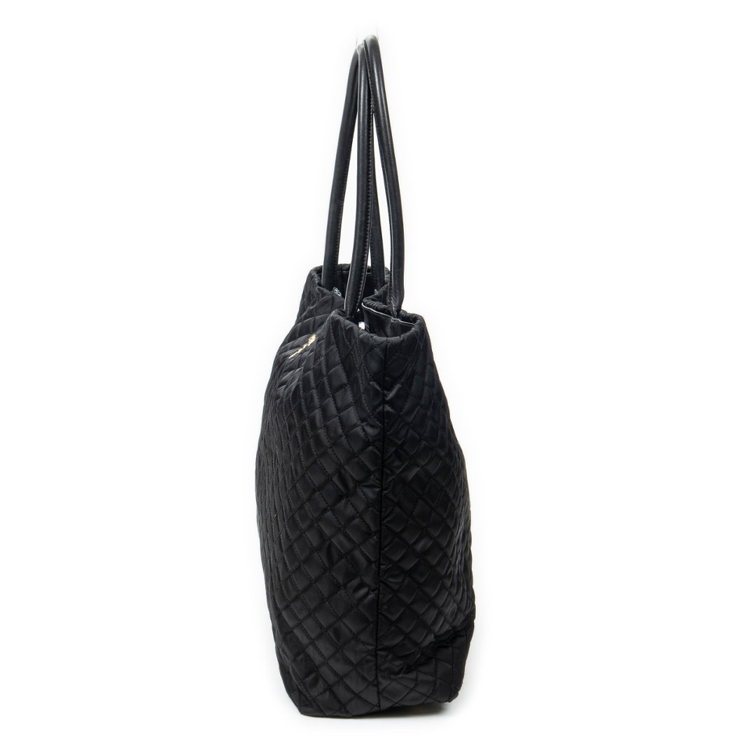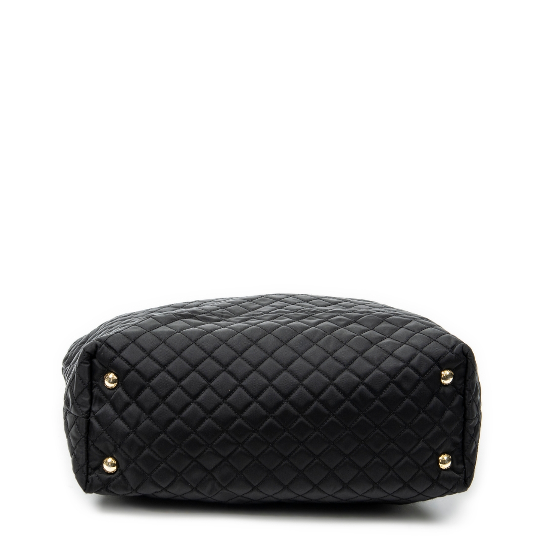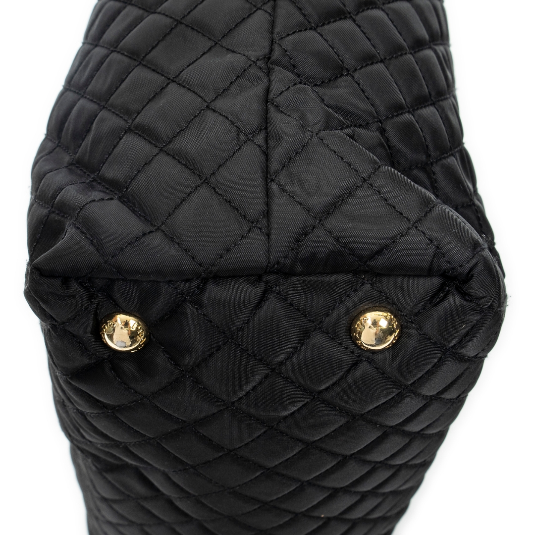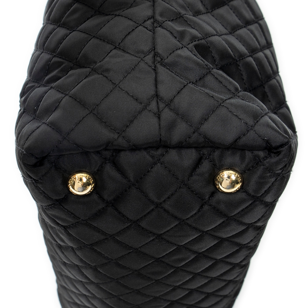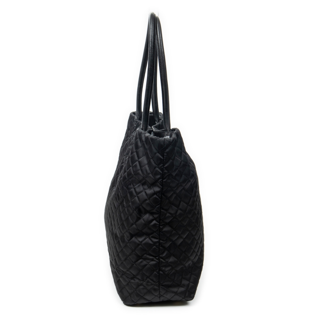 A vintage Prada black canvas Shopper Tote bag with a certificate of authenticity, Approximately 32cm height, 31cm width.