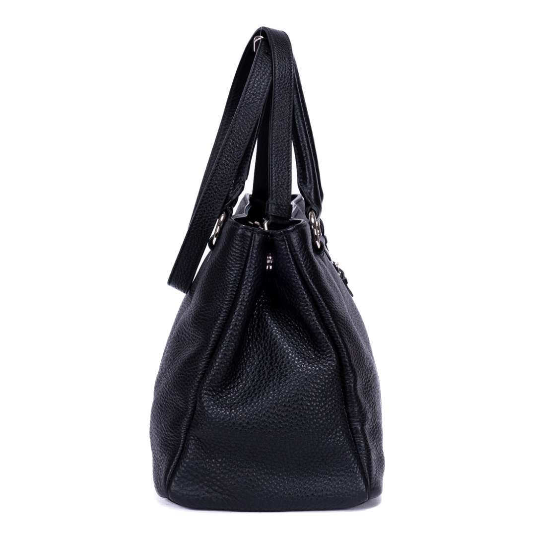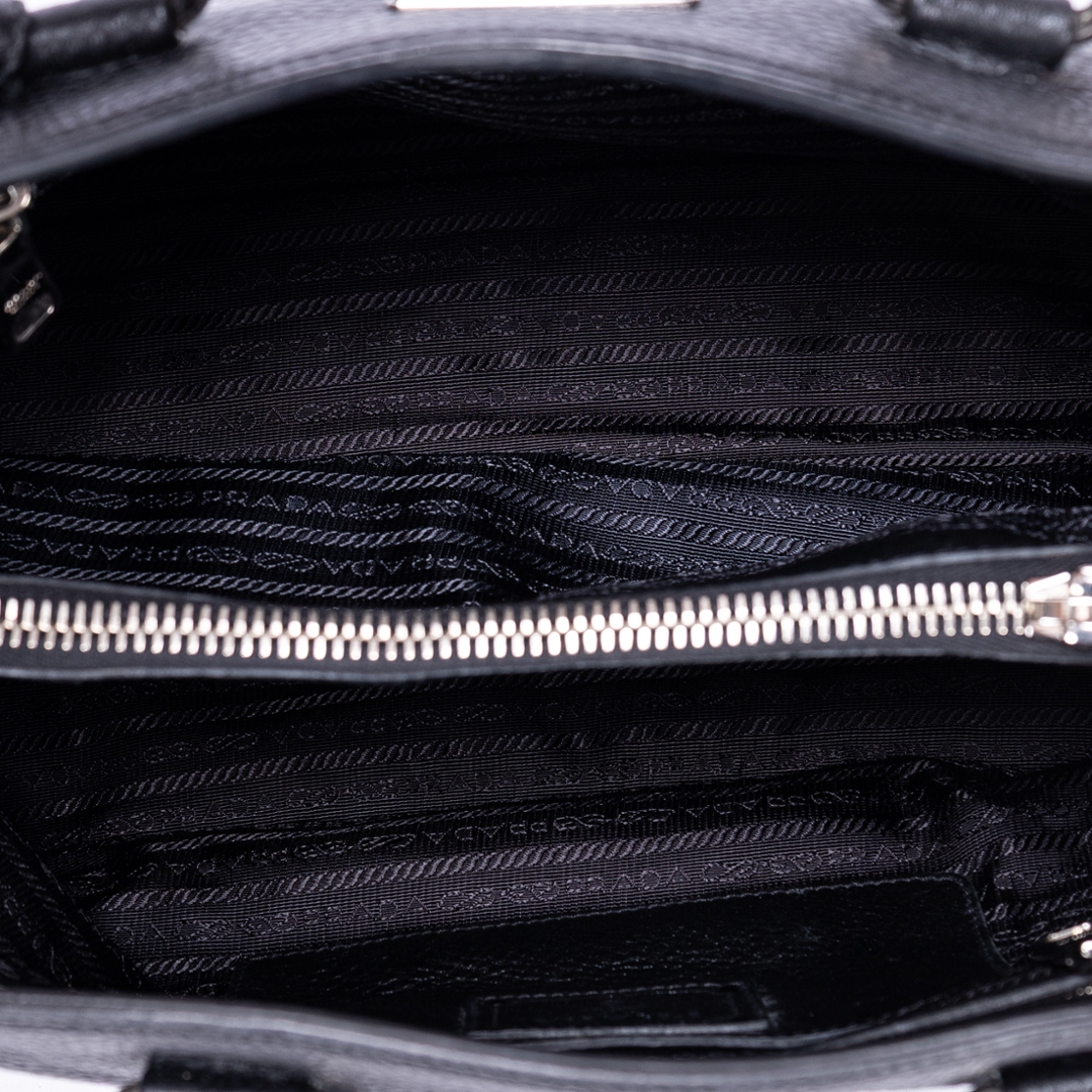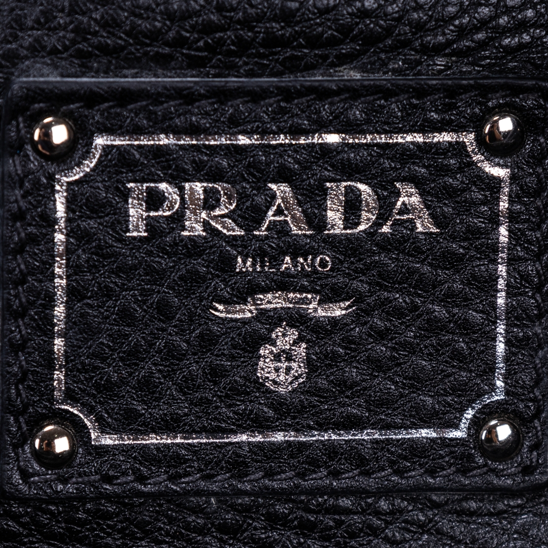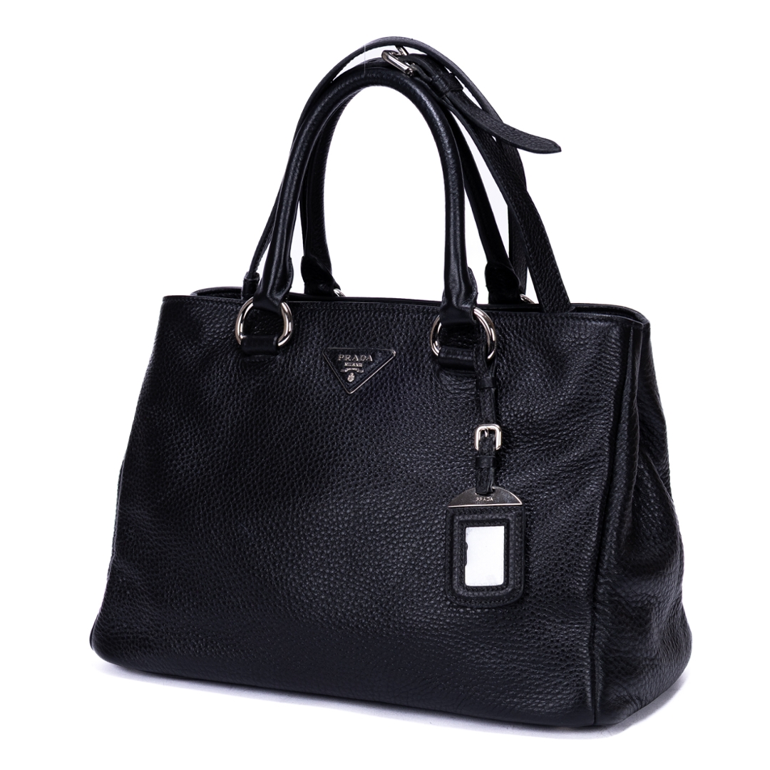 A vintage Prada black calf leather Shopping Tote bag with a certificate of authenticity. Approximately 25cm height, 34cm width.