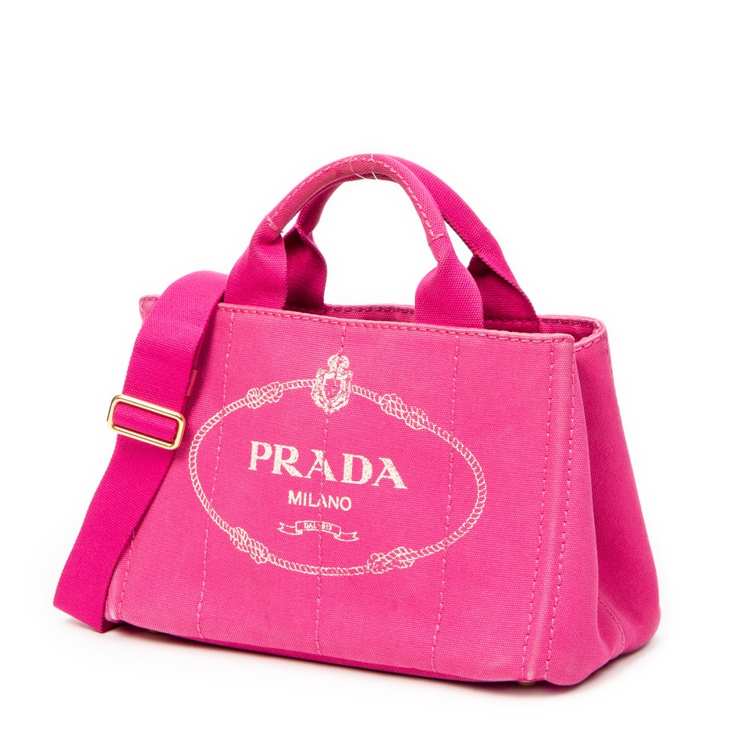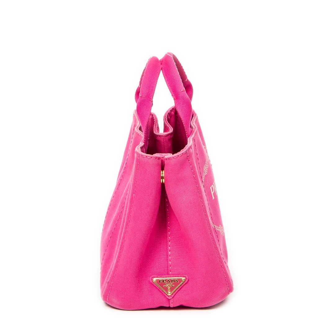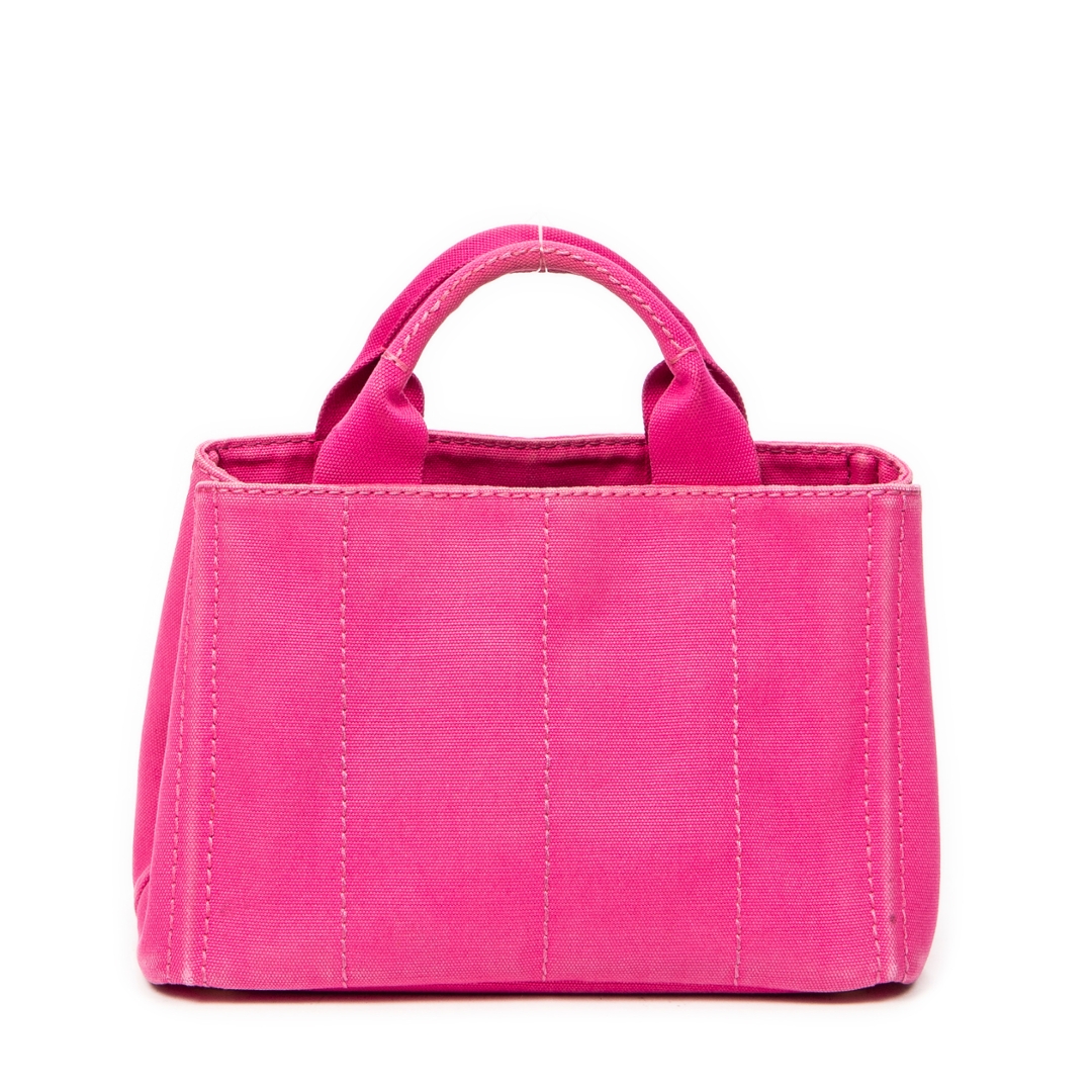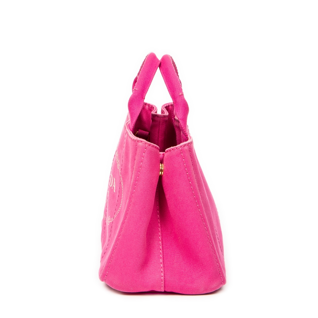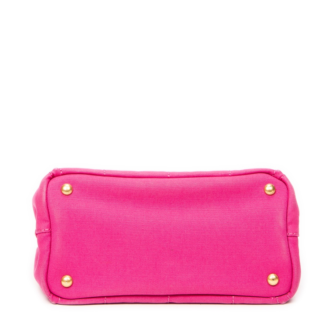 A vintage Prada fuchsia pink canvas Small Canapa Tote bag with a certificate of authenticity, Approximately 18cm height, 28cm width.