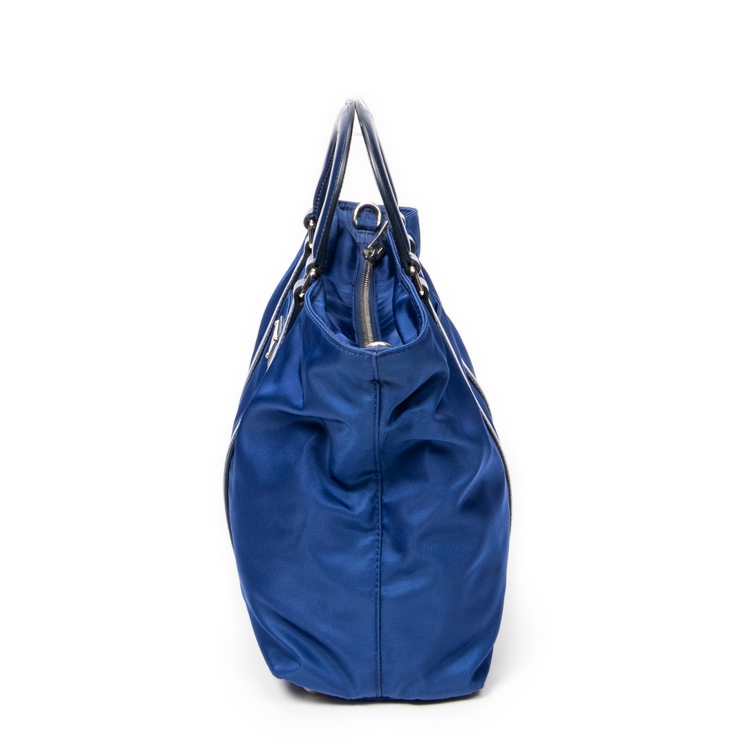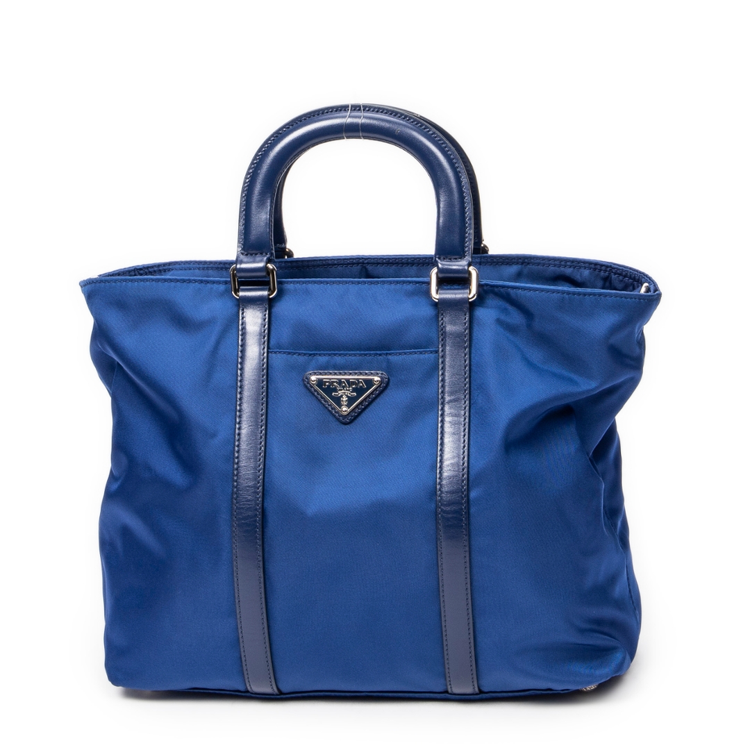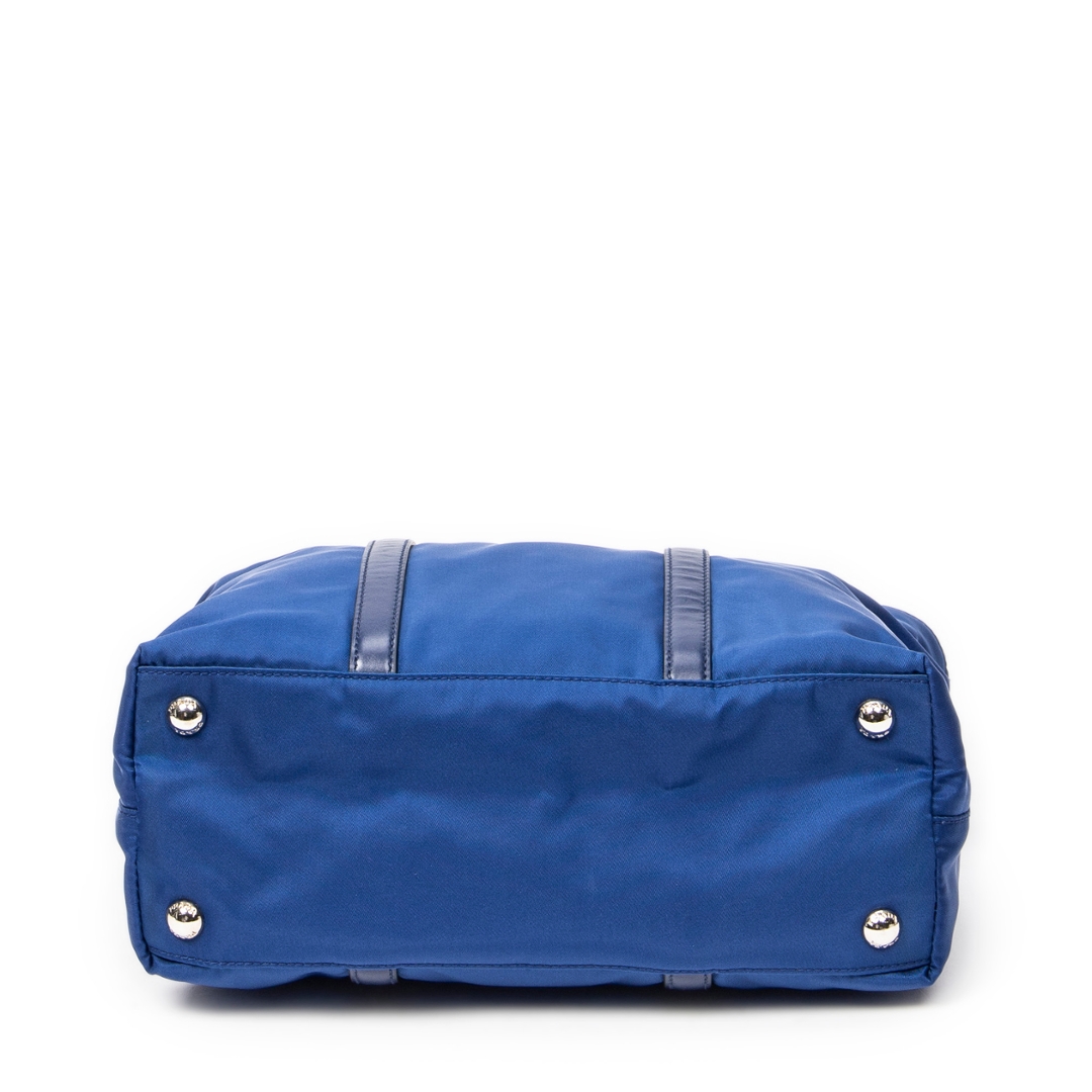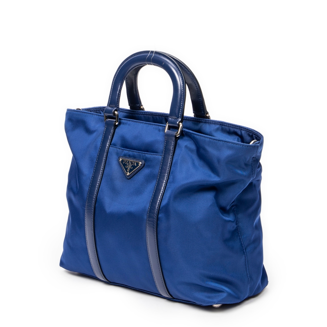A vintage Prada blue canvas Small Convertible Zip Tote bag with a certificate of authenticity, Approximately 24cm height, 27cm width.