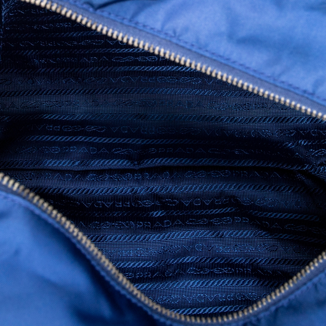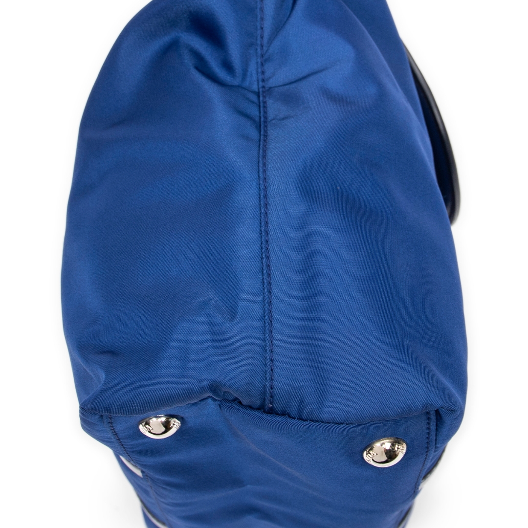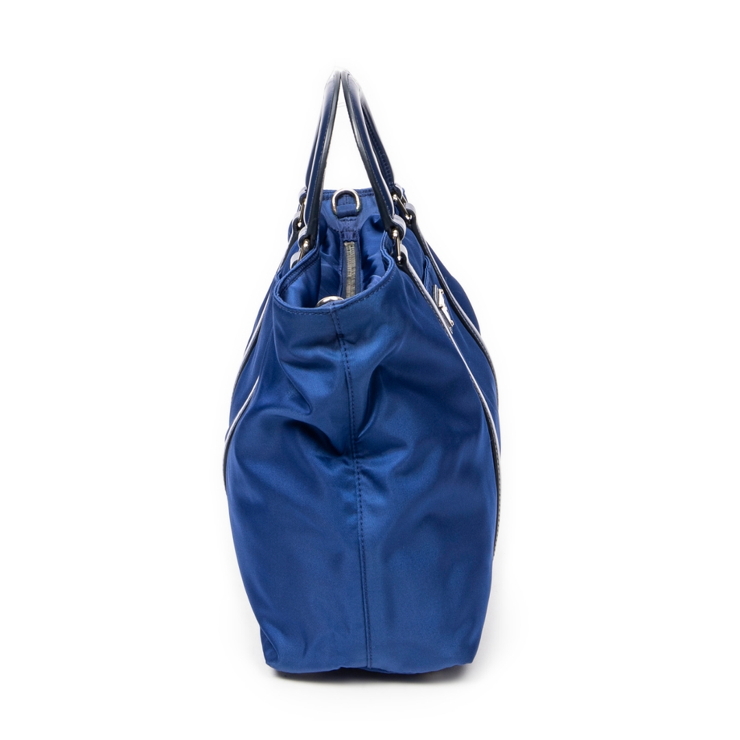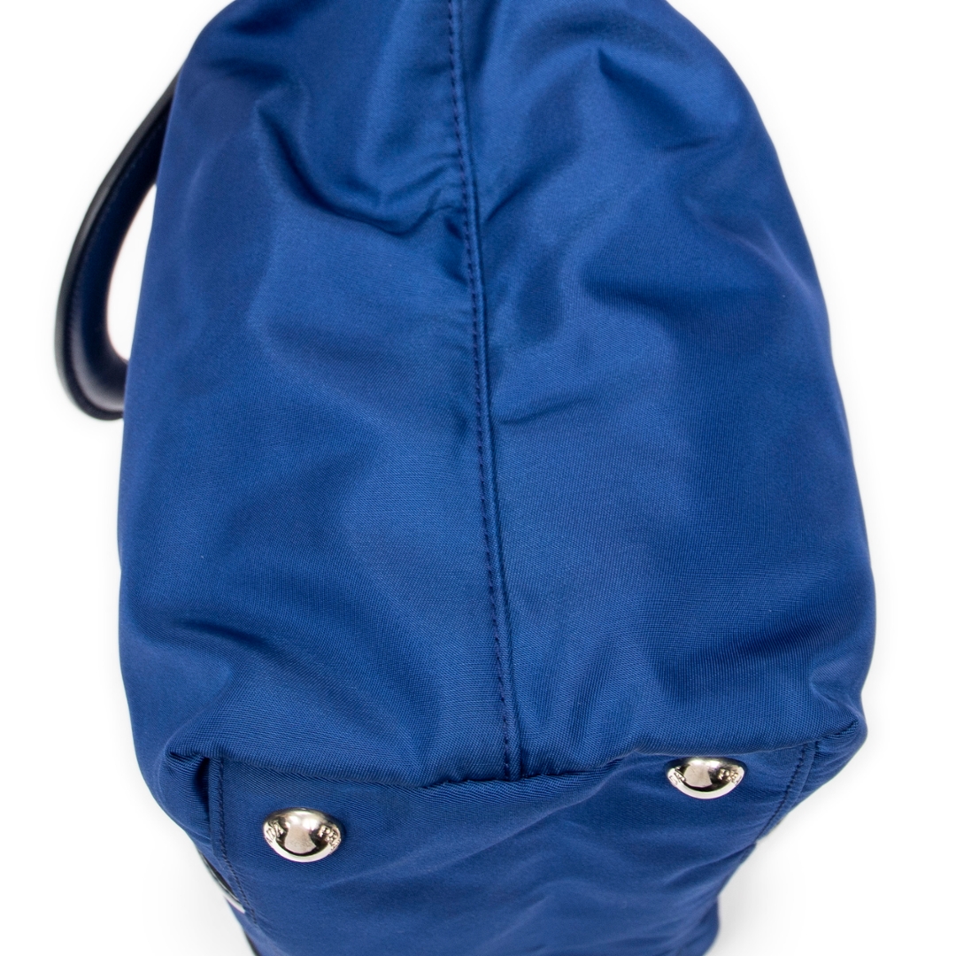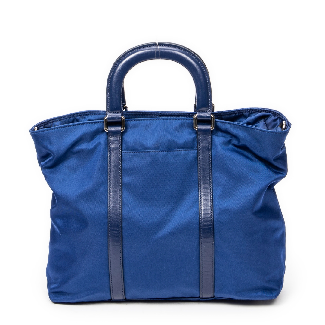 A vintage Prada blue canvas Small Convertible Zip Tote bag with a certificate of authenticity, Approximately 24cm height, 27cm width.