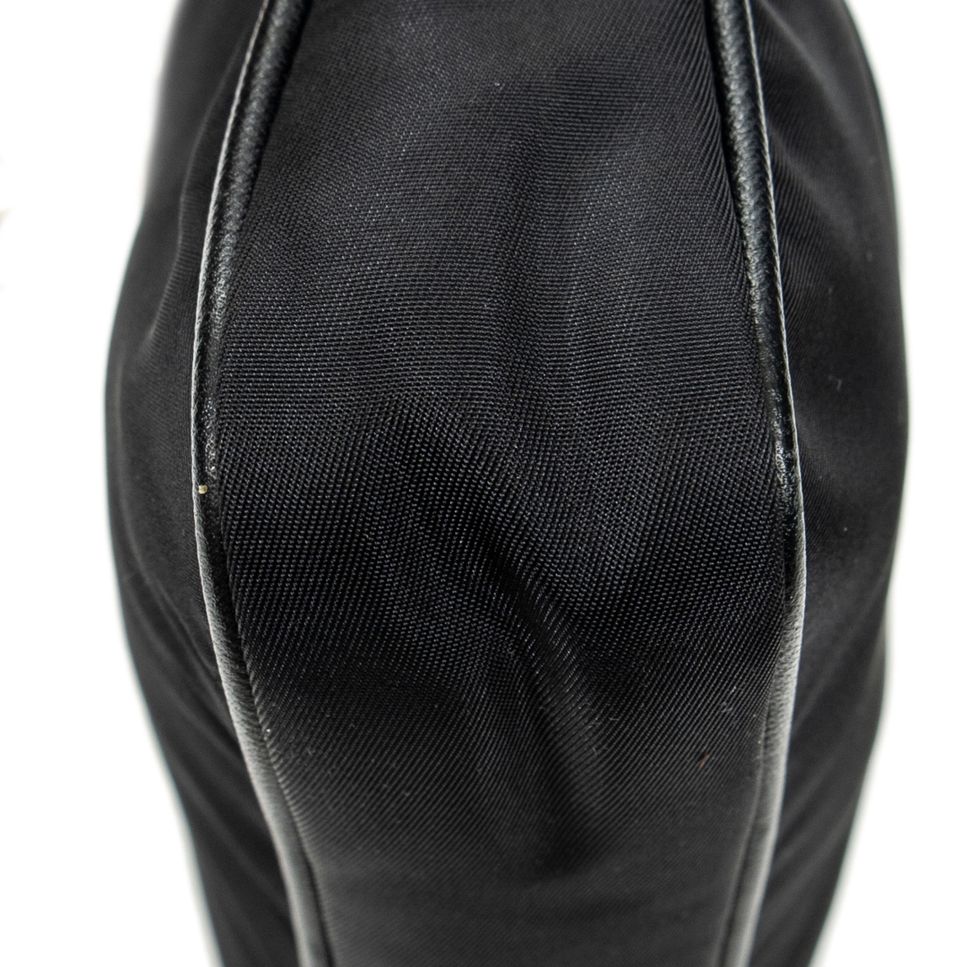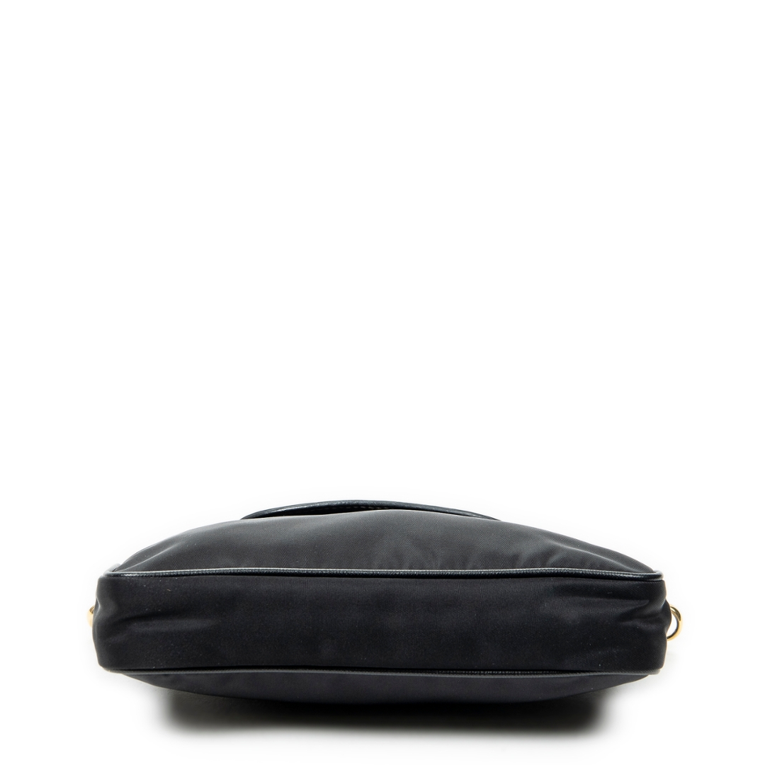 A vintage Prada black canvas Small Zip Chain Crossbody bag with a certificate of authenticity. Approximately 12cm height, 22cm width.