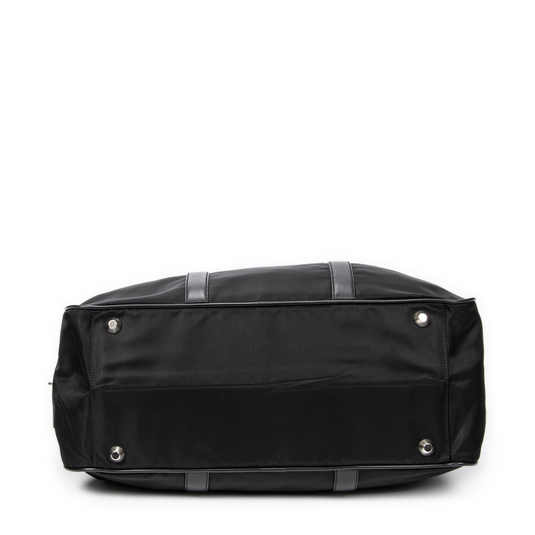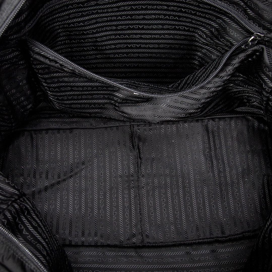A vintage Prada black canvas Soft Nylon Duffle Bag with a certificate of authenticity. Approximately 30cm height, 45cm width.