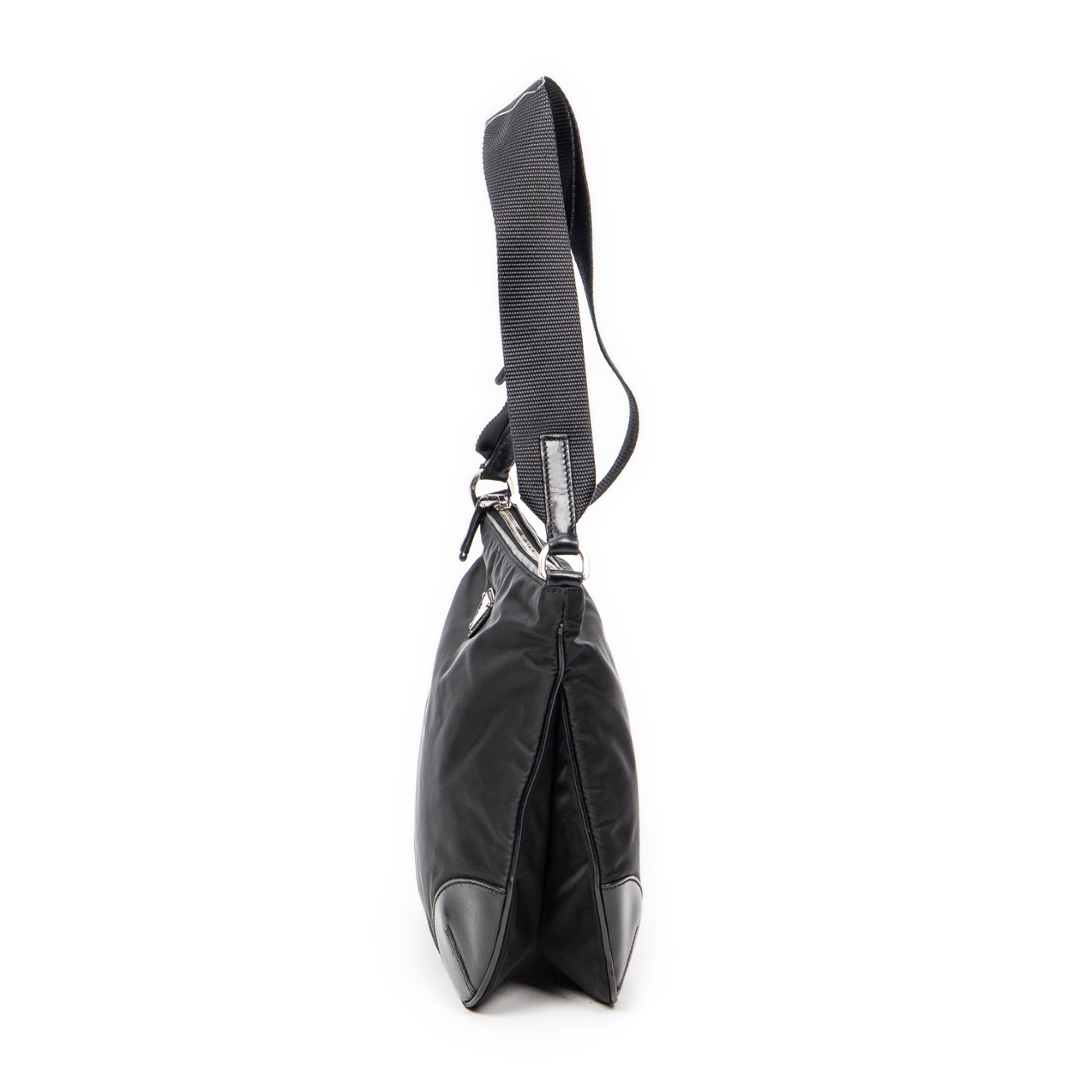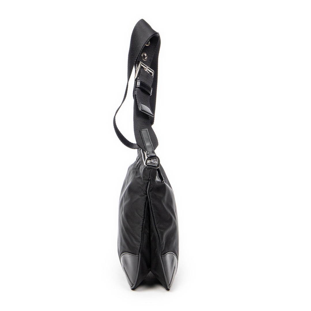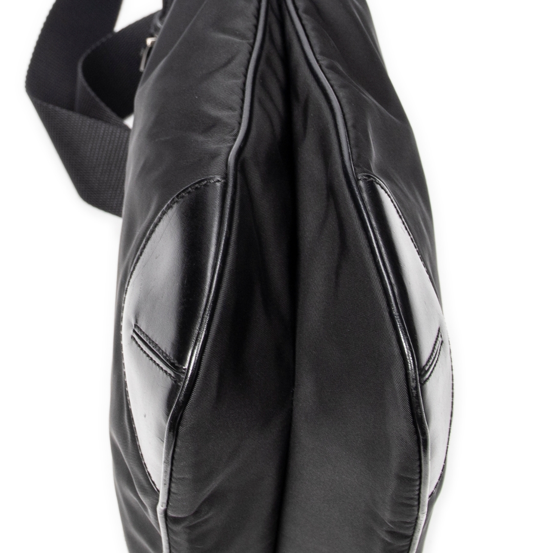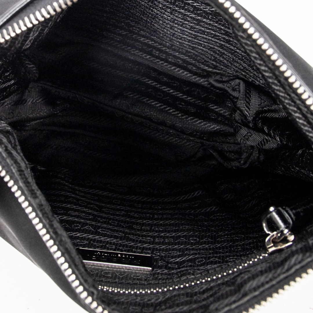 A vintage Prada black canvas Zip Crossbody bag with a certificate of authenticity, Approximately 23cm height, 26cm width.
