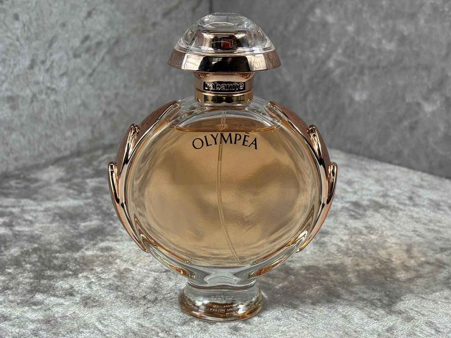 A 80ml bottle of Olympea Eau de Parfum by Rabanne, an iconic and
