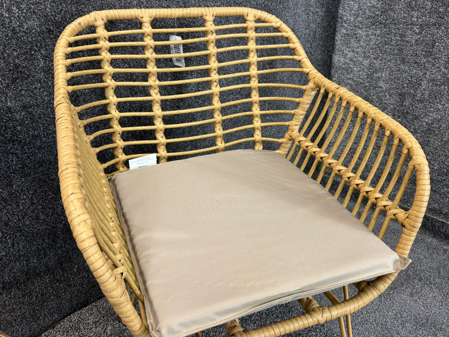 A Rattan Three Piece Garden Set, including 2 x Cushioned Dining Chairs and a Tempered Glass Table