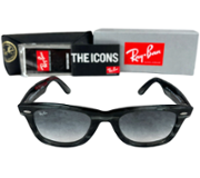 A brand-new, boxed, unused Ray-Ban RB2140 901/32 Black Sunglasses. As part of the iconic Wayfarer collection, these sunglasses are a timeless symbol of cool sophistication. They strike the perfect balance between classic design and modern edge, featuring a sleek black frame and gradient lenses. Whether strolling through the city streets or relaxing by the beach, these sunglasses are an essential accessory to complement any outfit.