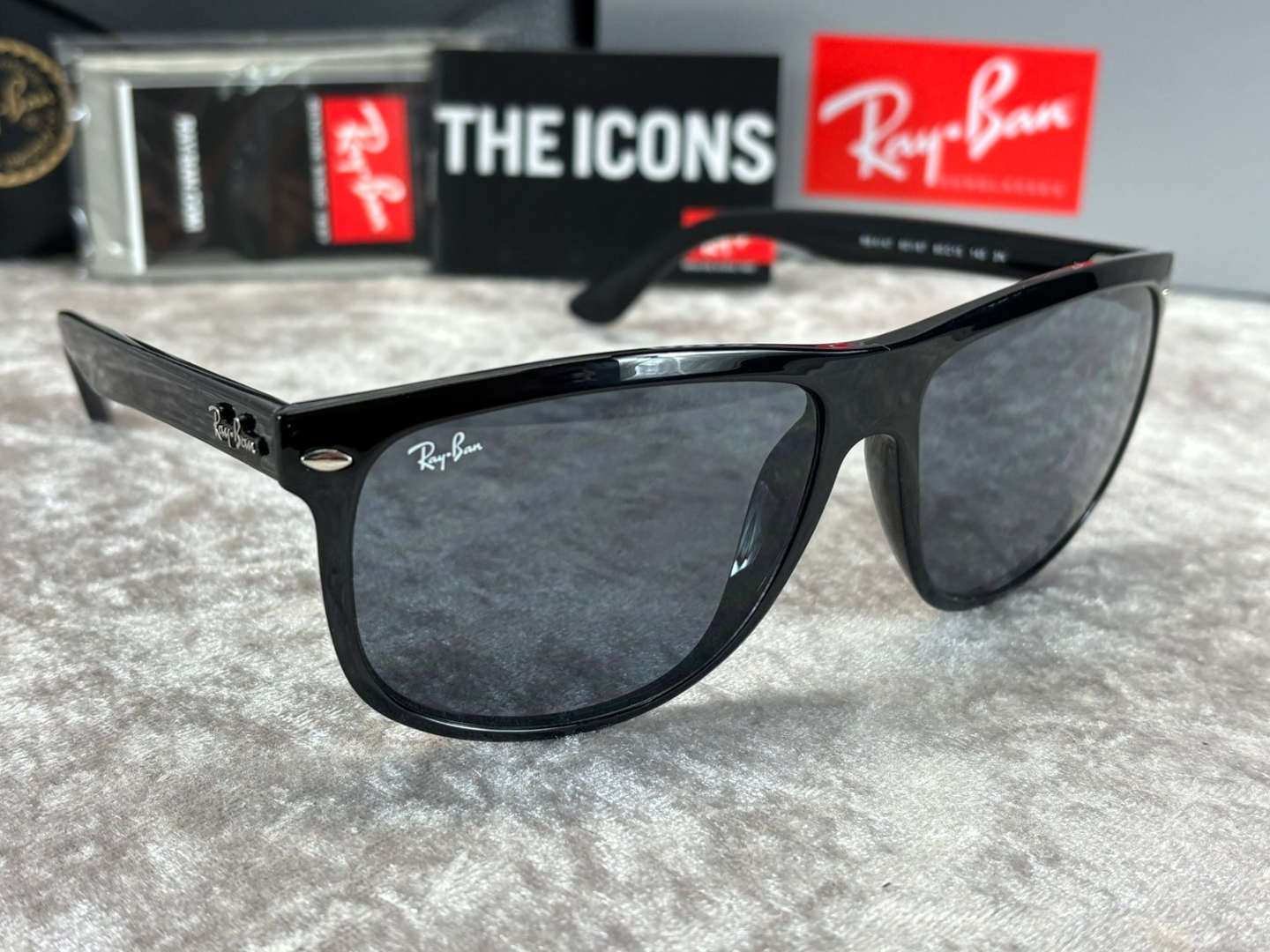 A brand new, unused and boxed pair of Ray-Ban RB4147 601/87 Black sunglasses, offering a bold, contemporary look with the easy-wearing comfort Ray-Ban is known for. The glossy black frame gives this larger, squared silhouette a sleek and confident presence, while the grey gradient lenses provide a smooth, balanced visual experience suited to everyday use. Completed with the Ray-Ban signature on the lens, this model delivers classic authenticity with a modern edge.